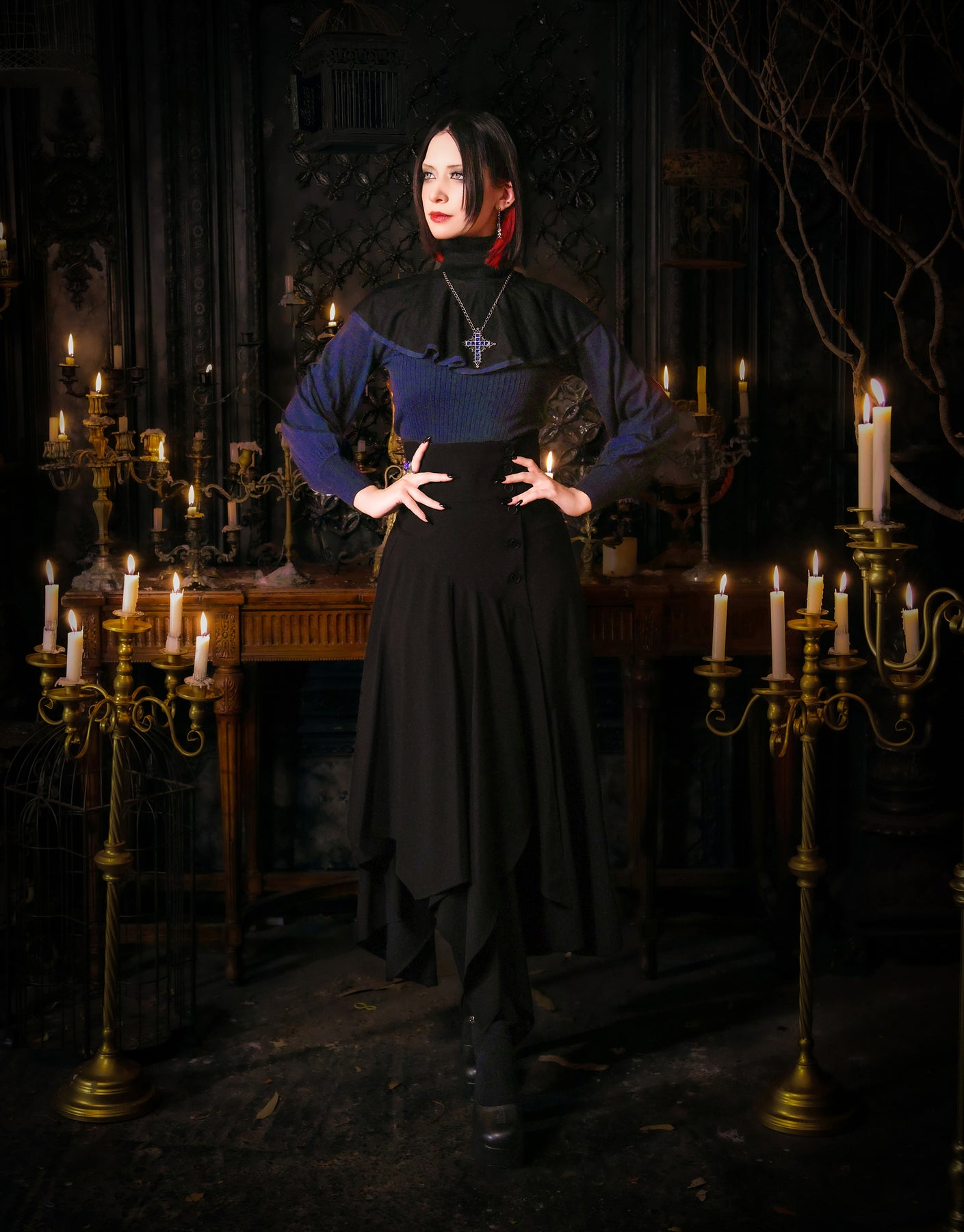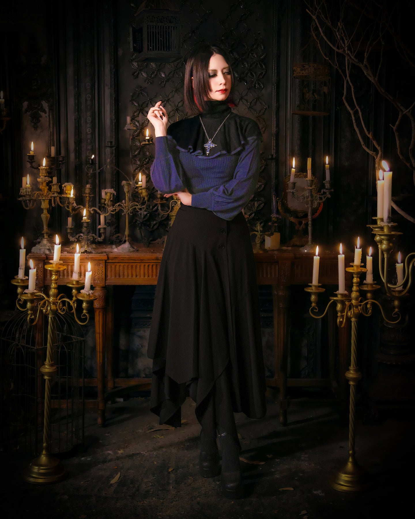 切替から裾にかけてドレープが美しいシルエットを作ります。
