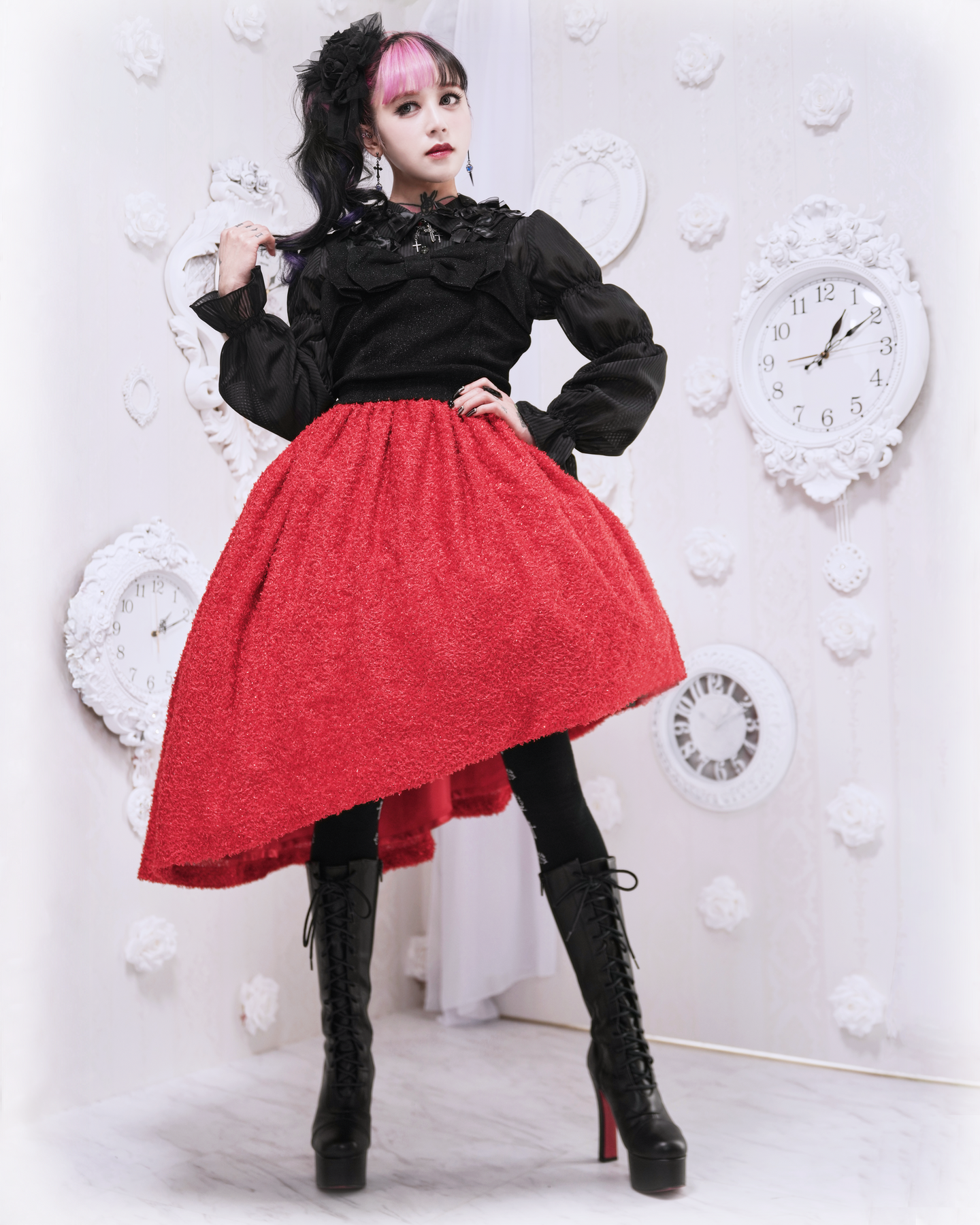 立体感のあるボリュームのある生地ですので、パニエを入れるとより華やかになります。