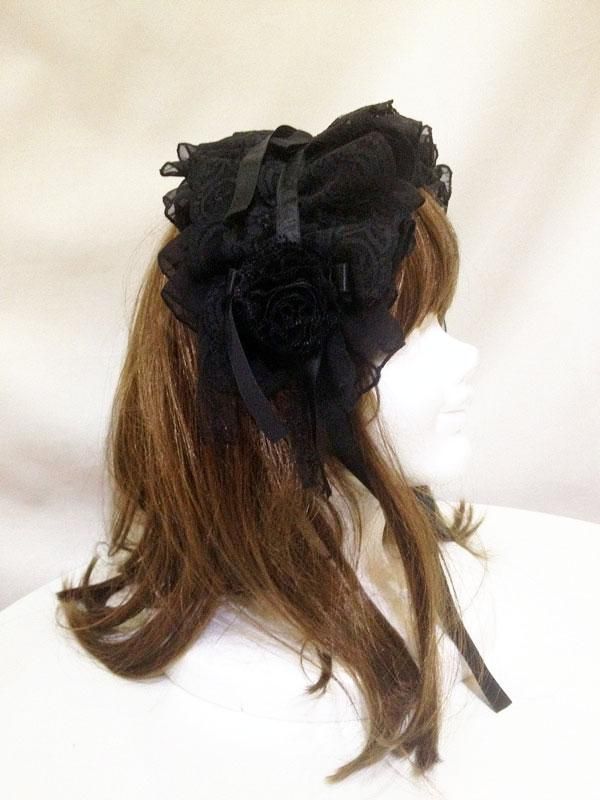 ★両サイドに大きなレールのバラが付いたボリュームたっぷりの豪華なヘッドドレス。