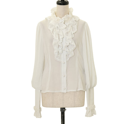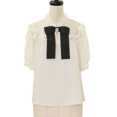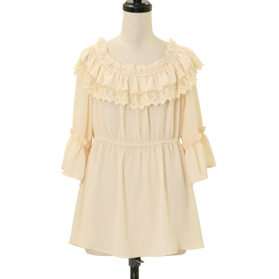 【USED】【Mサイズ】はしごレース襟オフショルブラウス