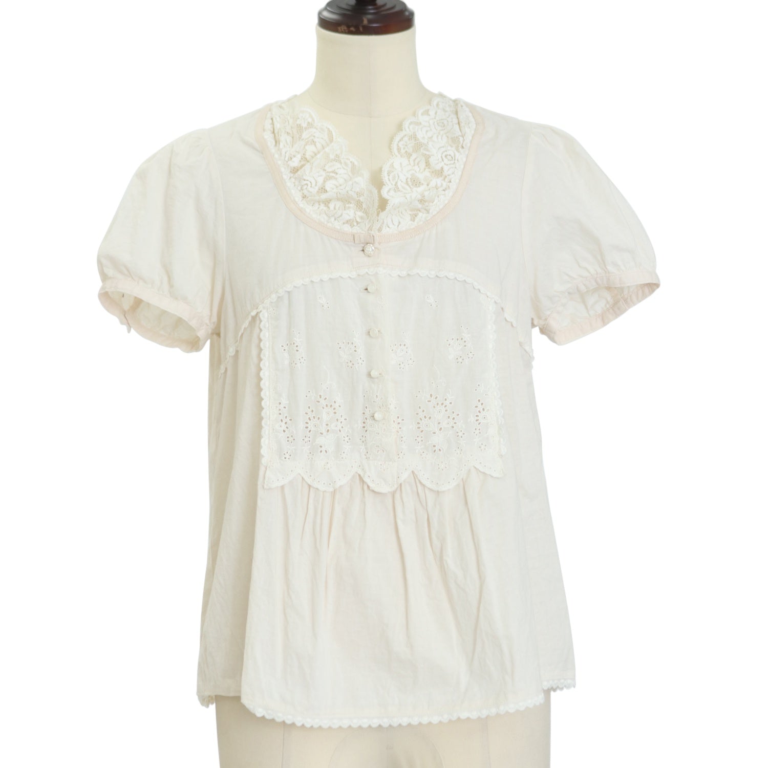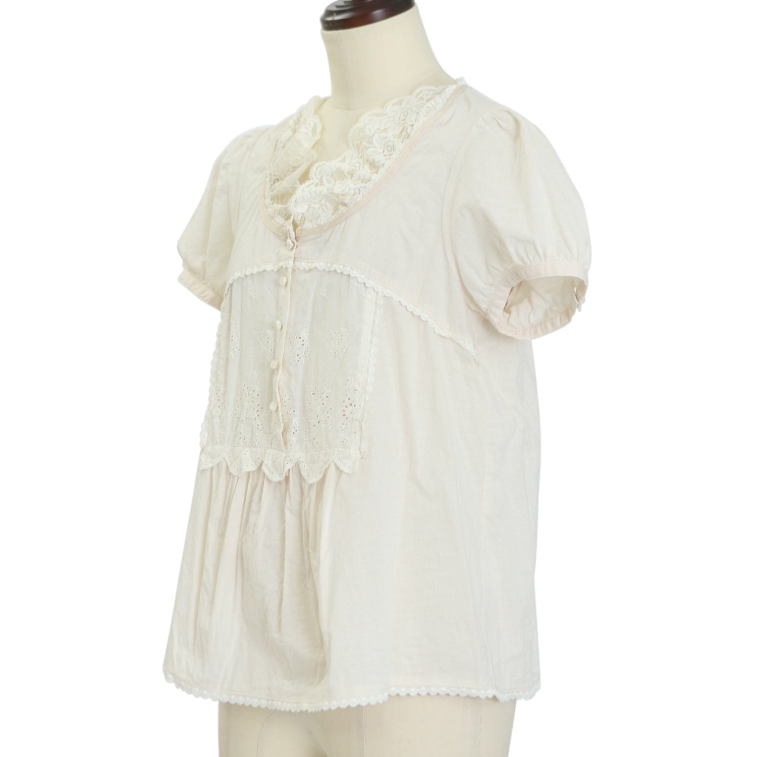 【USED】【franche lippee/Mサイズ】レース切替コットンパフトップス