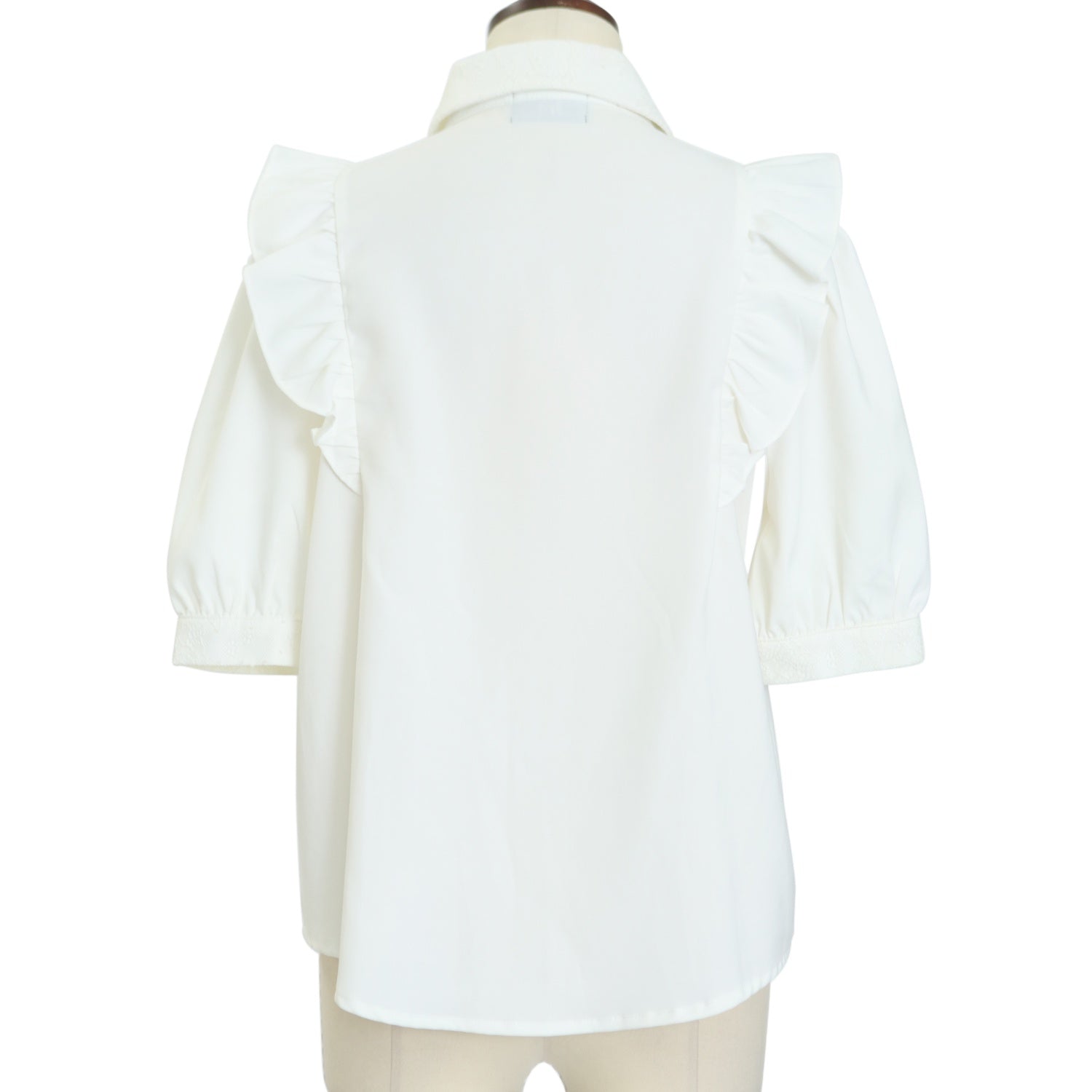 | 商品状態 | 使用感あり 胸元リボンブローチ欠品 黄ばみ 襟ぐり・袖口に目立つ黄ばみ 襟裏側に汚れ |