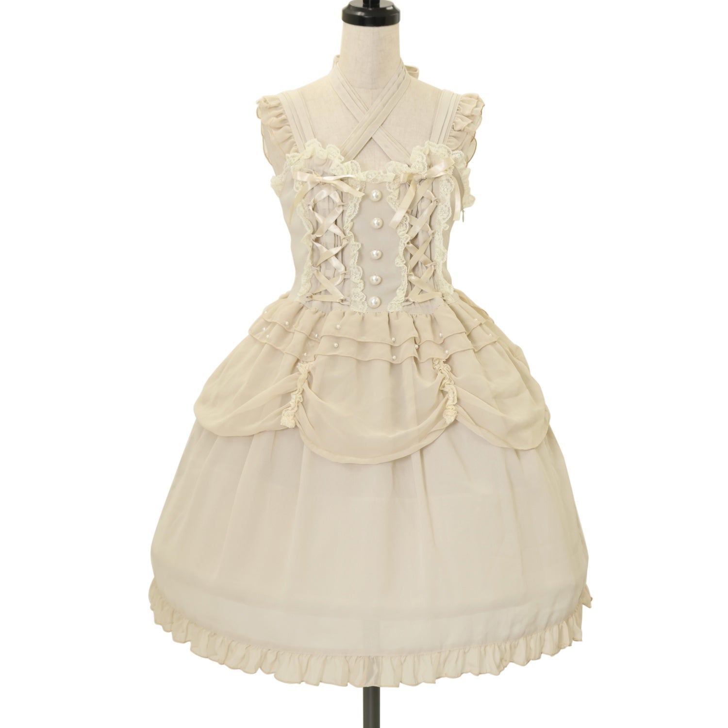 【USED】無地あみあげシフォンジャンパースカート
