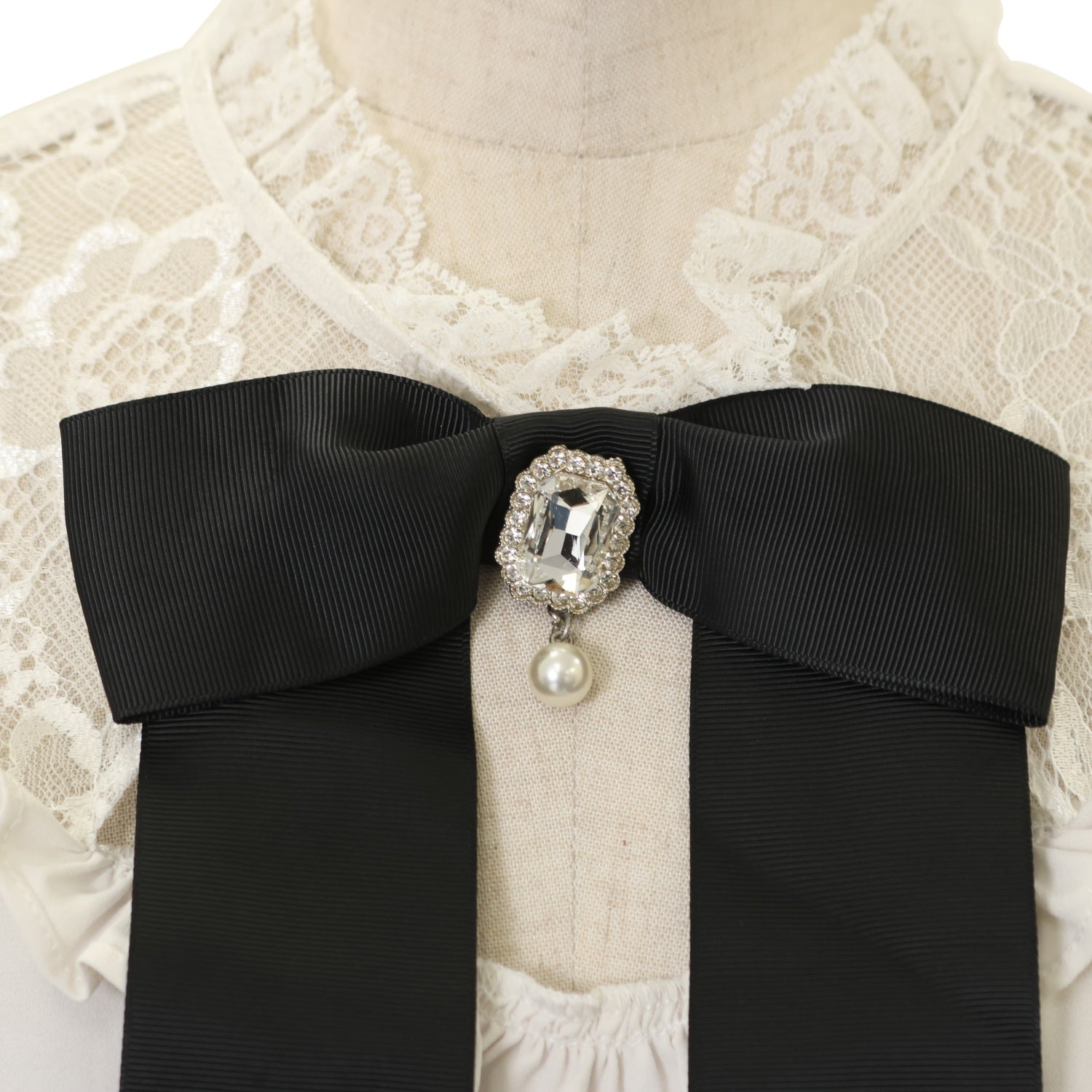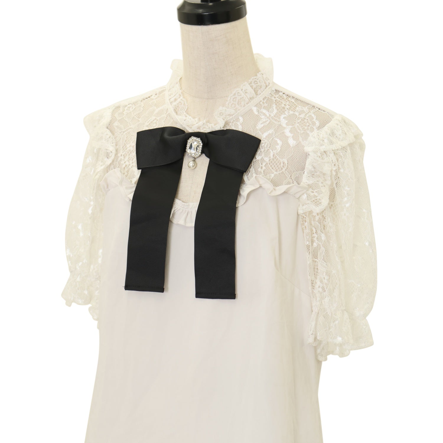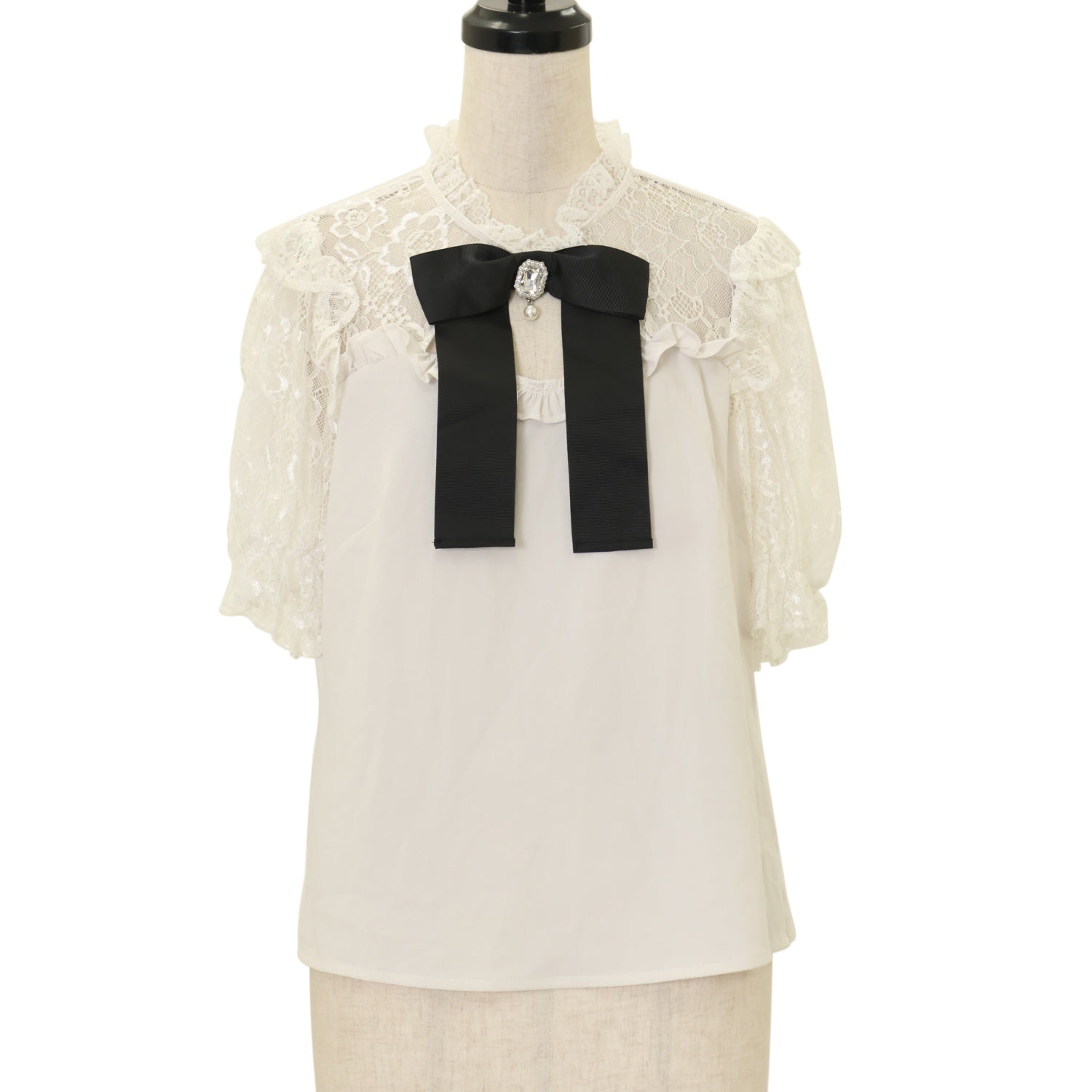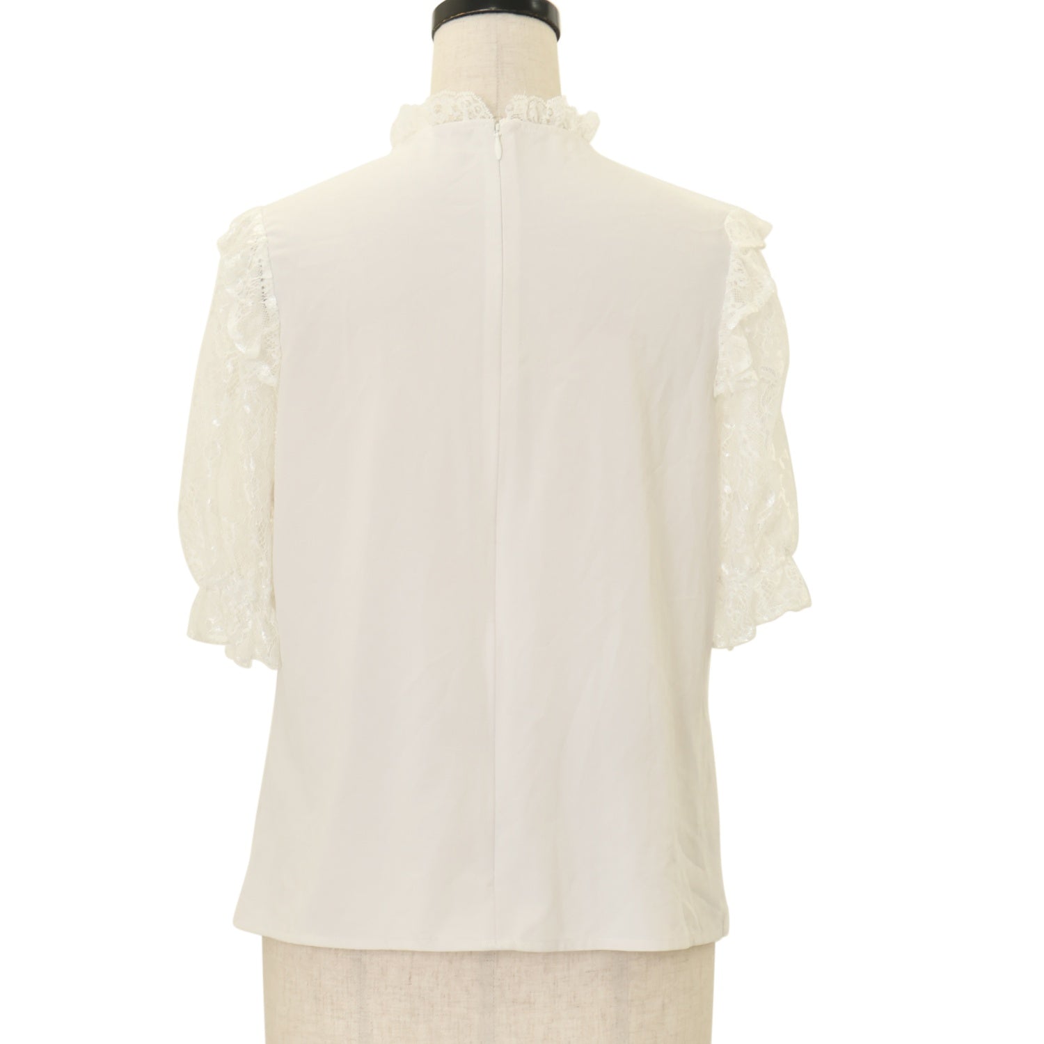 【USED】【Mサイズ】デコルテ開きレース切り替えブラウス