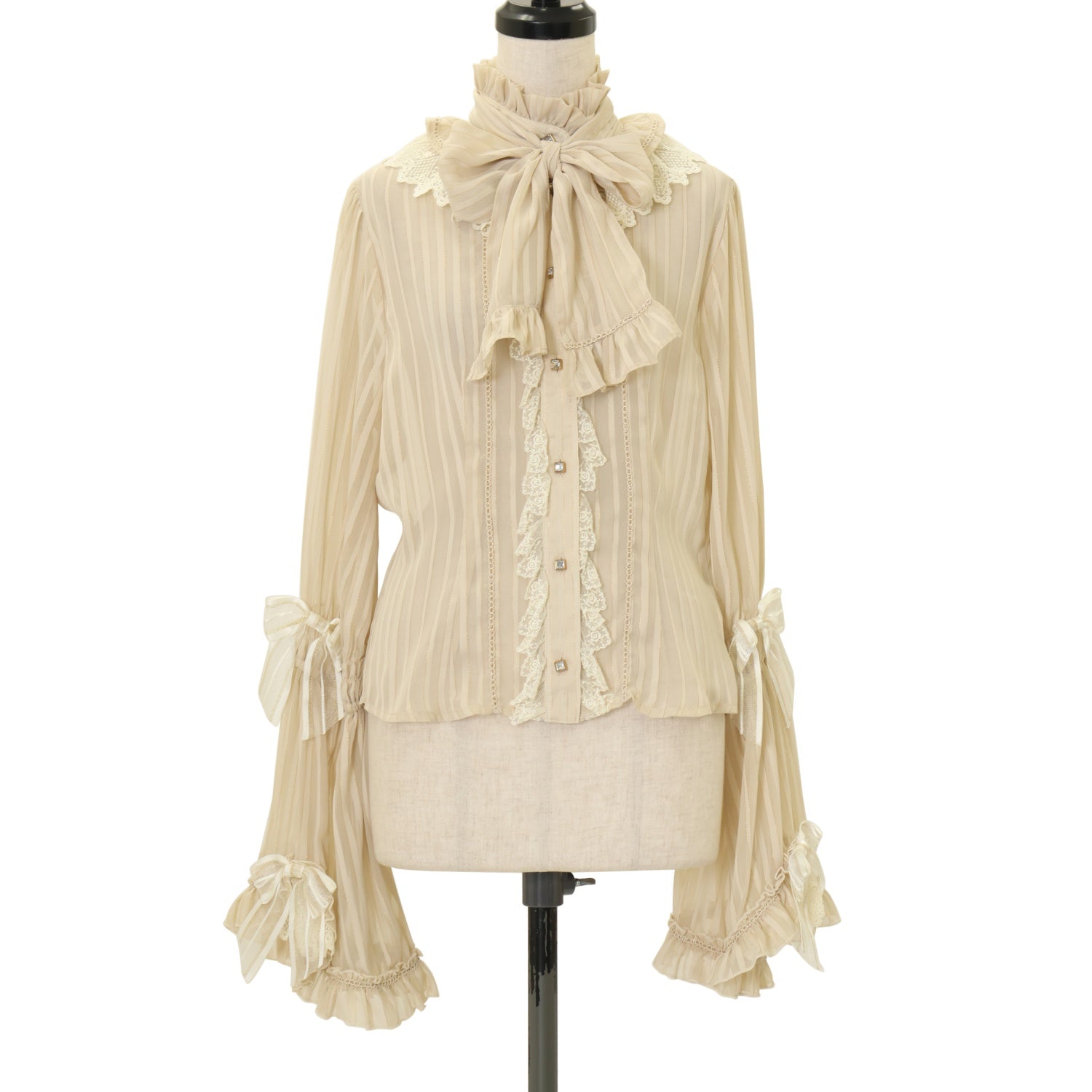 【USED】Julietのためのソネットストライプシフォンブラウス