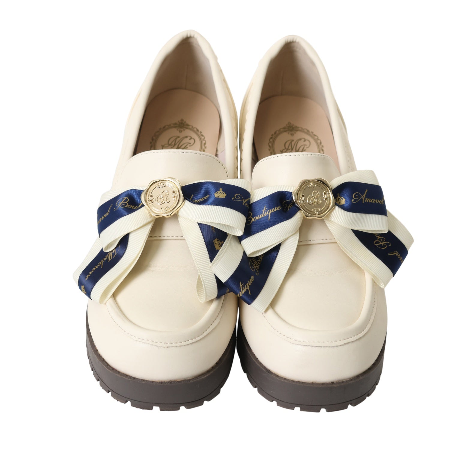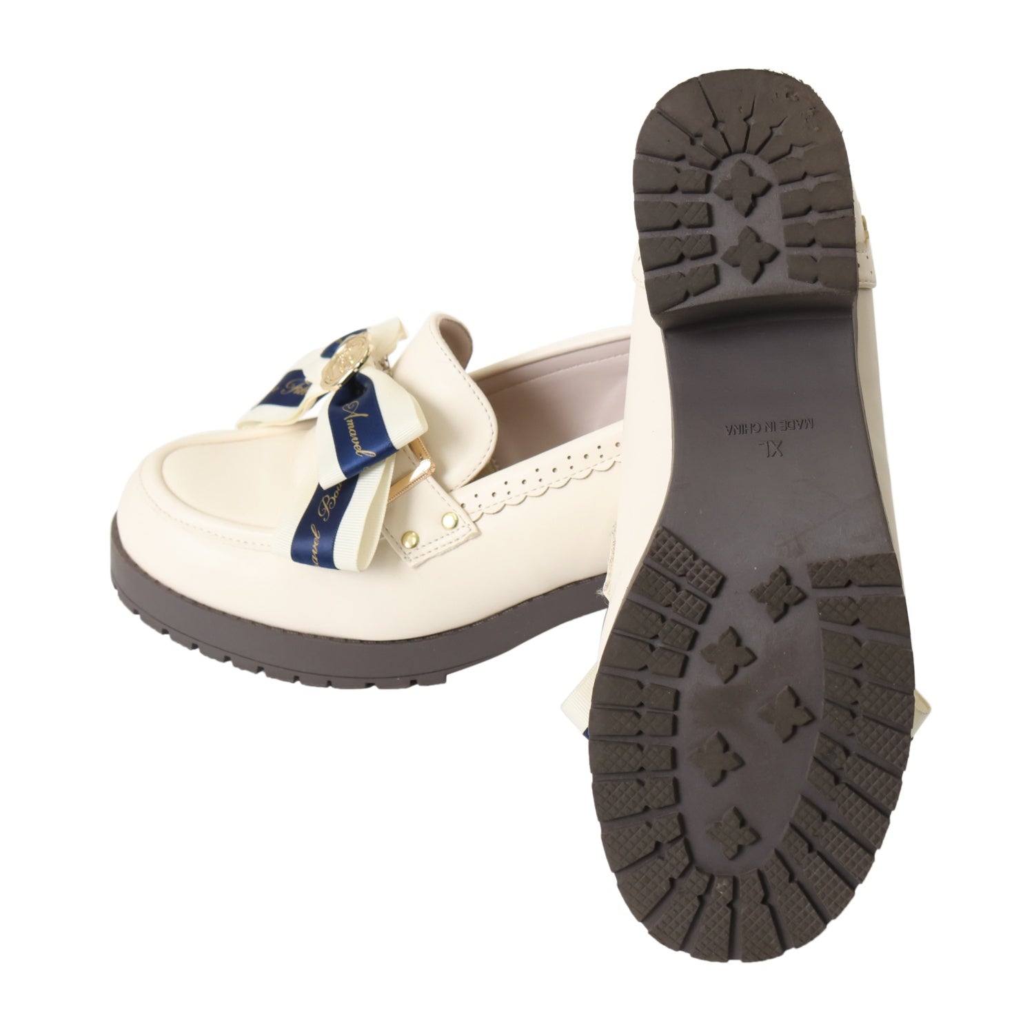 【USED】【XLサイズ】メッセージリボン付ローファーパンプス