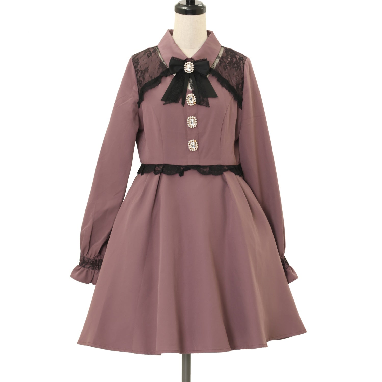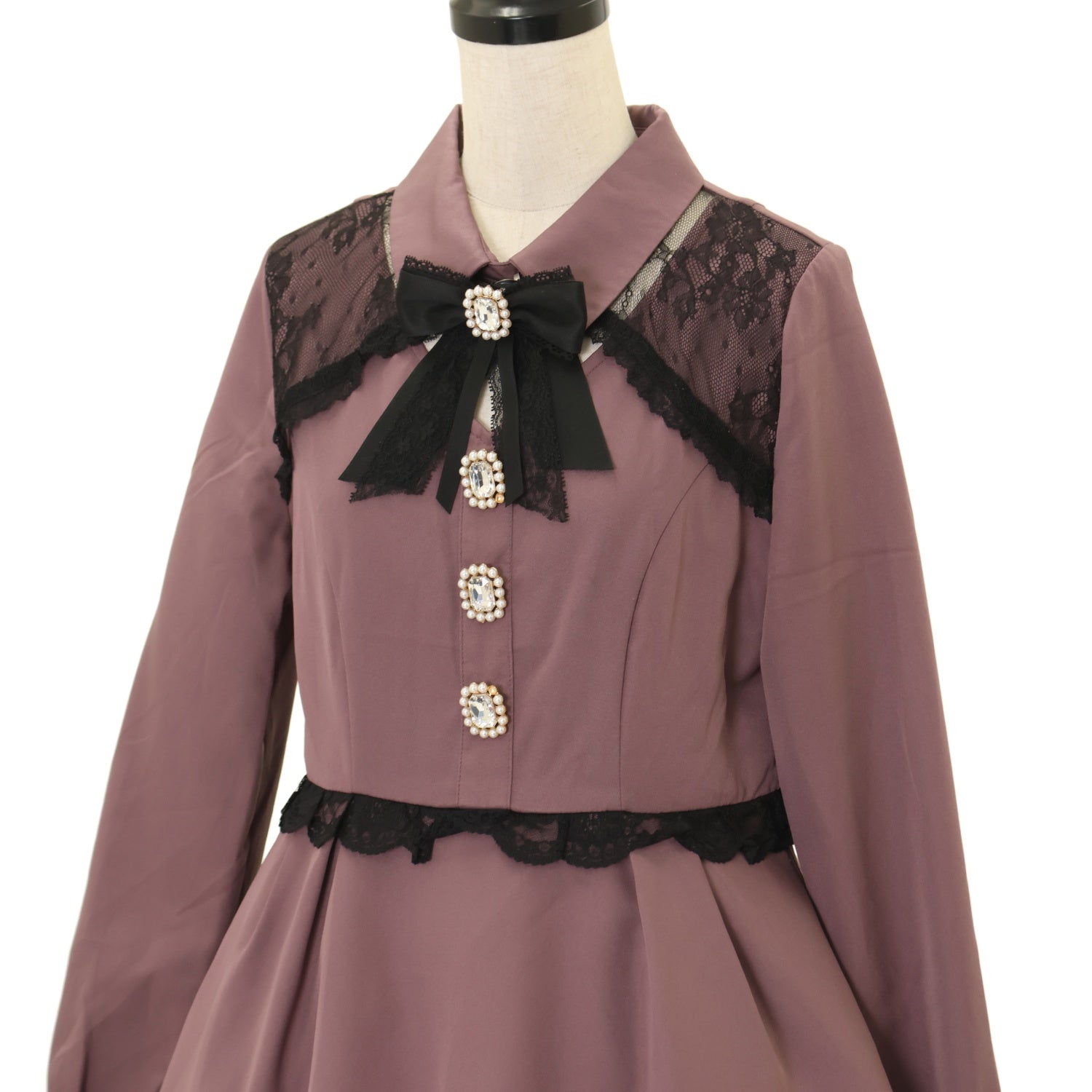 【USED】デコルテ開きビジュ釦フレアワンピース(ピンクブラウン)