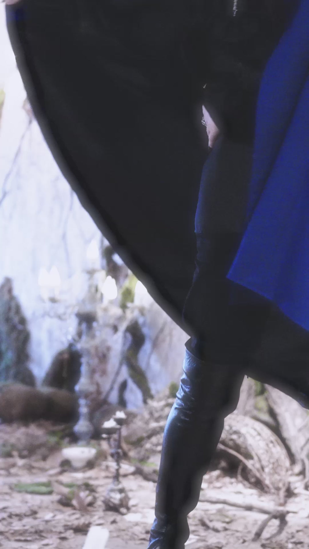This cloak features a bat collar, a design associated with the brand’s early image.