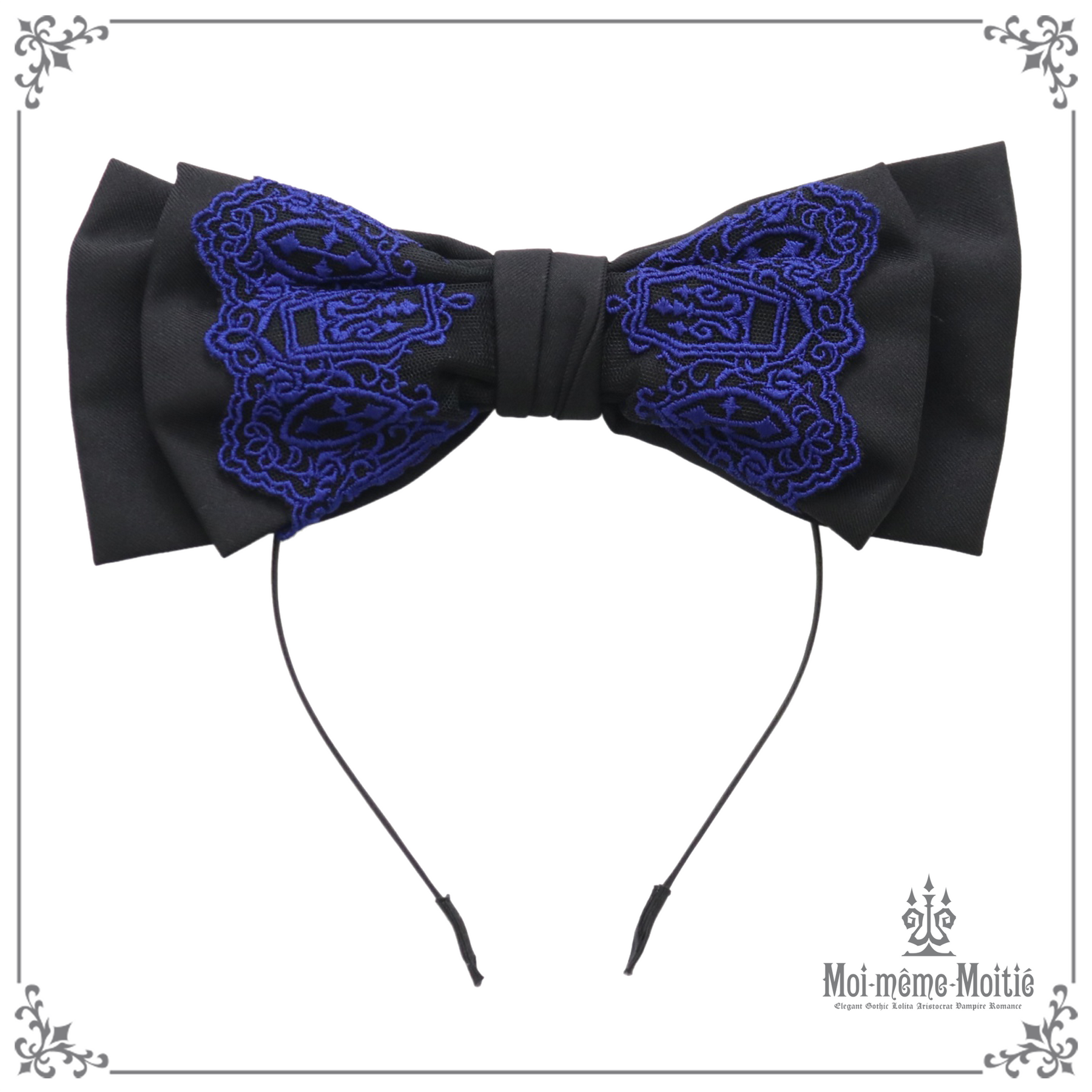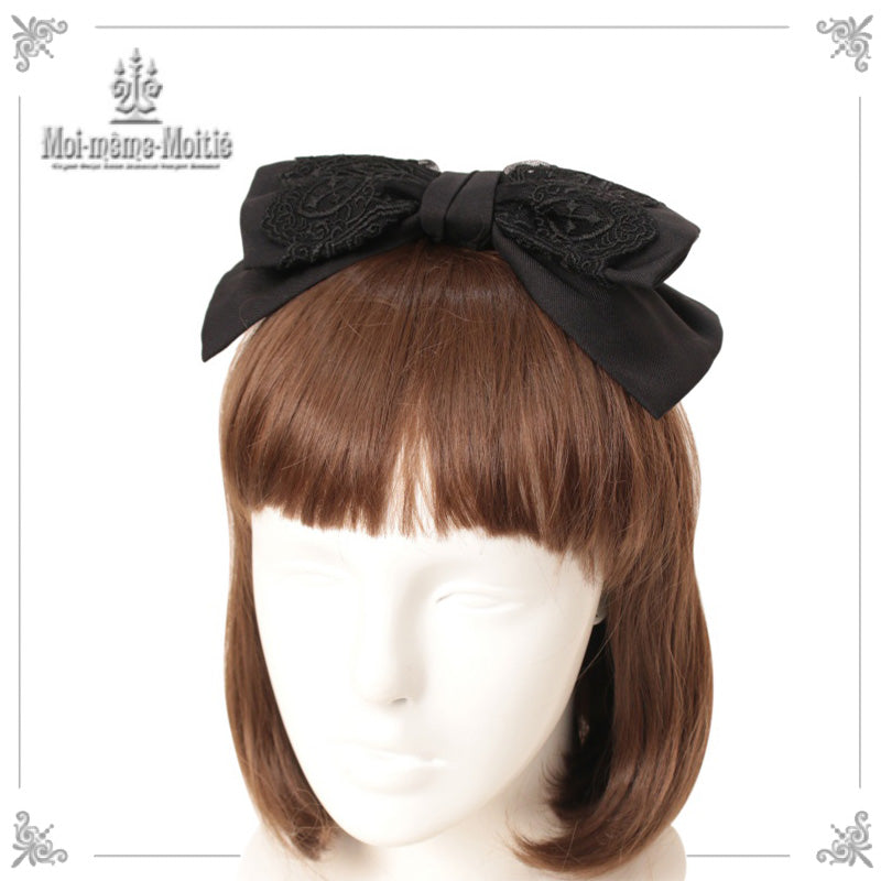 This headband features a large ribbon decorated with a coffin lace.