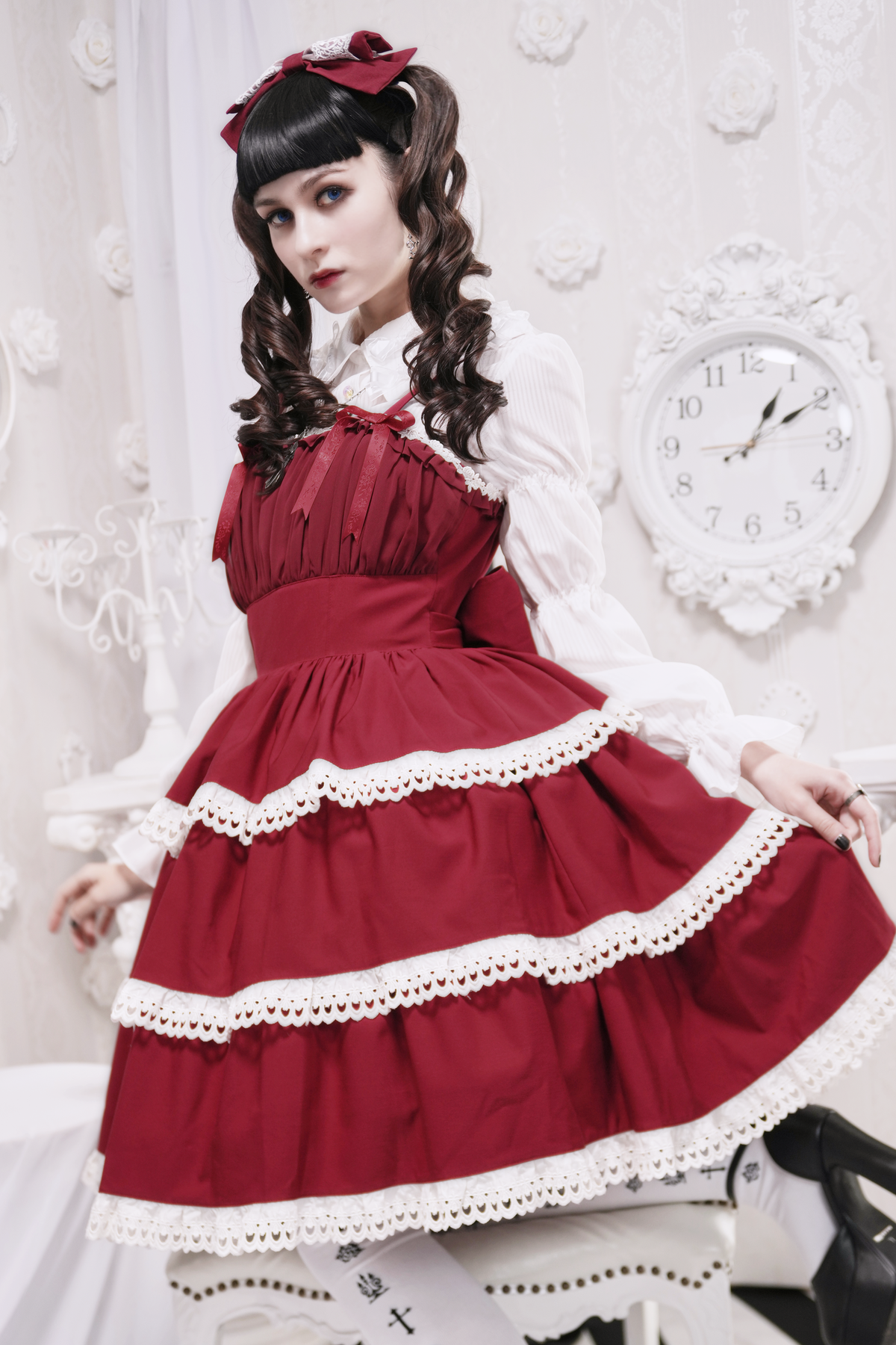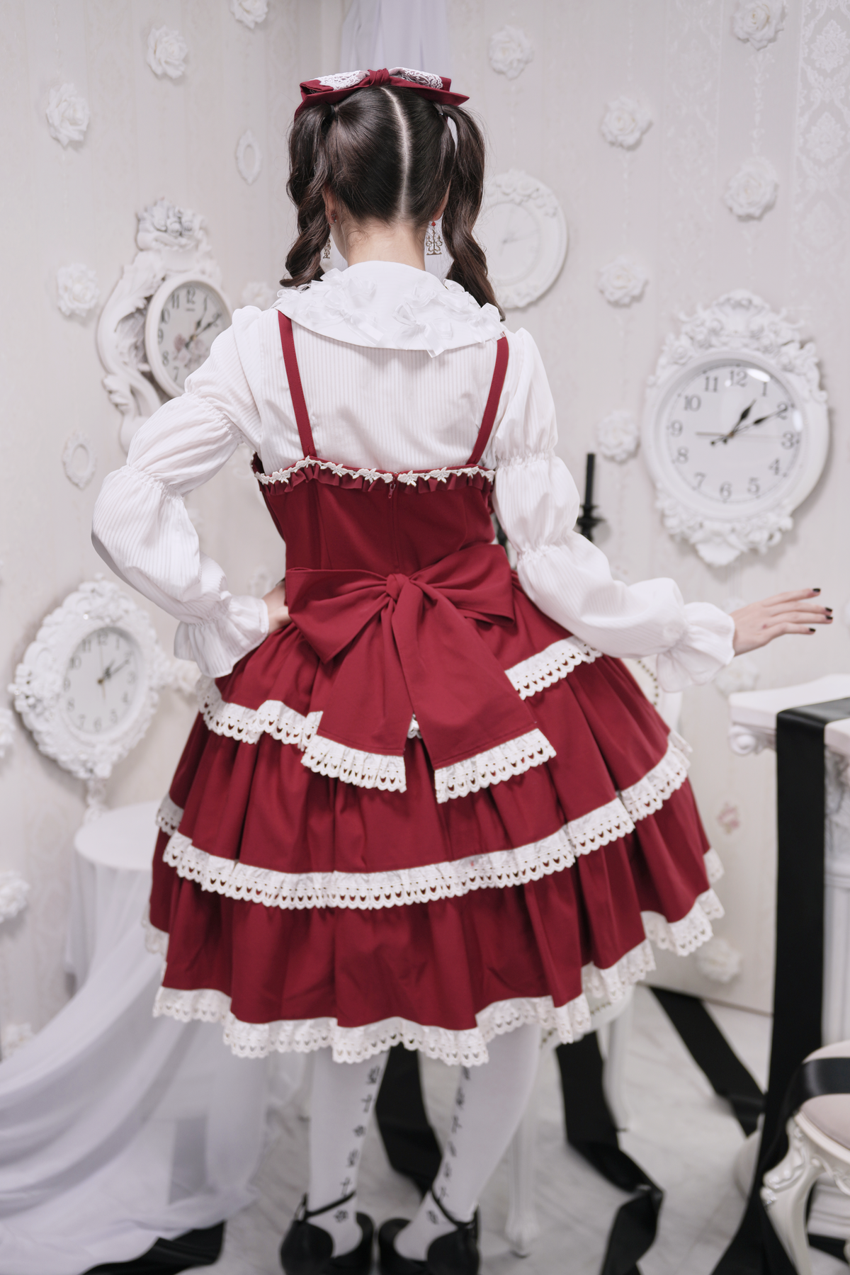 The ribbon can be moved as prefered, and the headband base is removable.