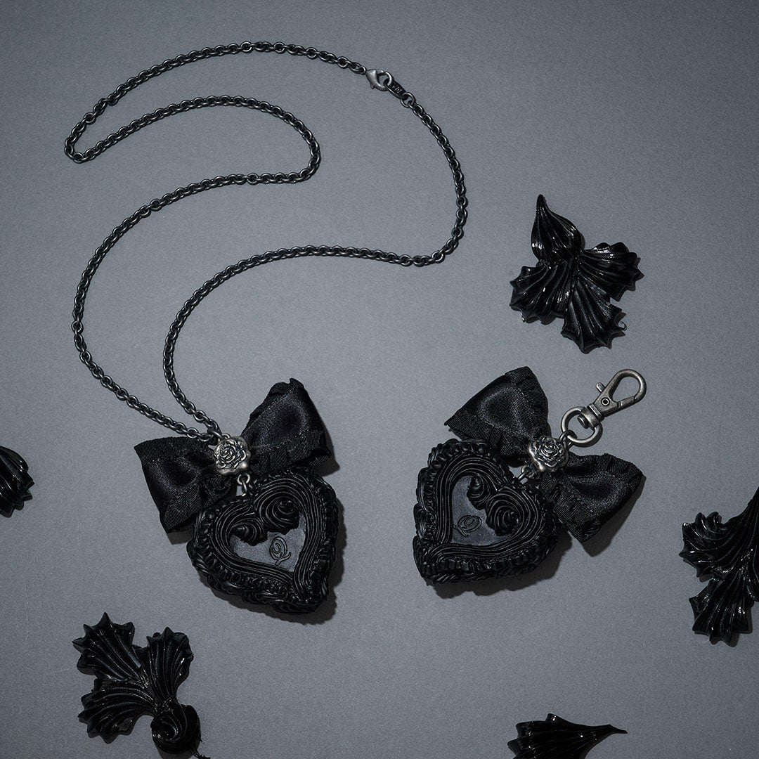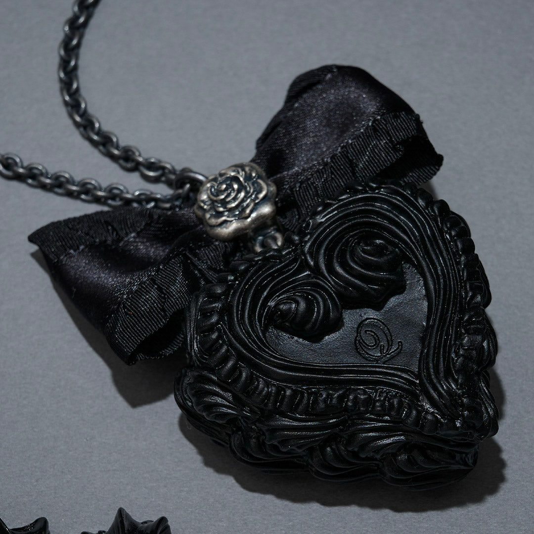 ゴシックな佇まいのハート型ケーキの中には