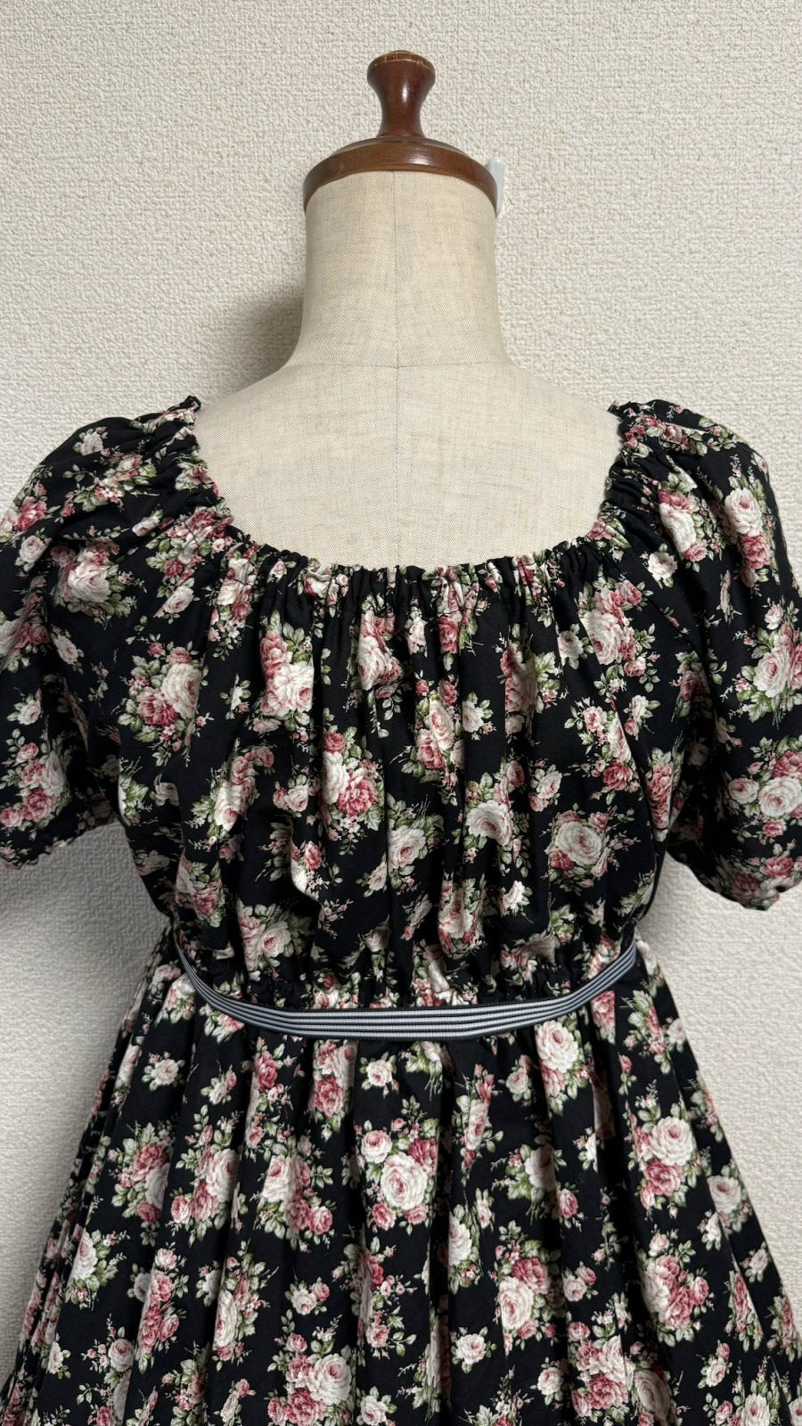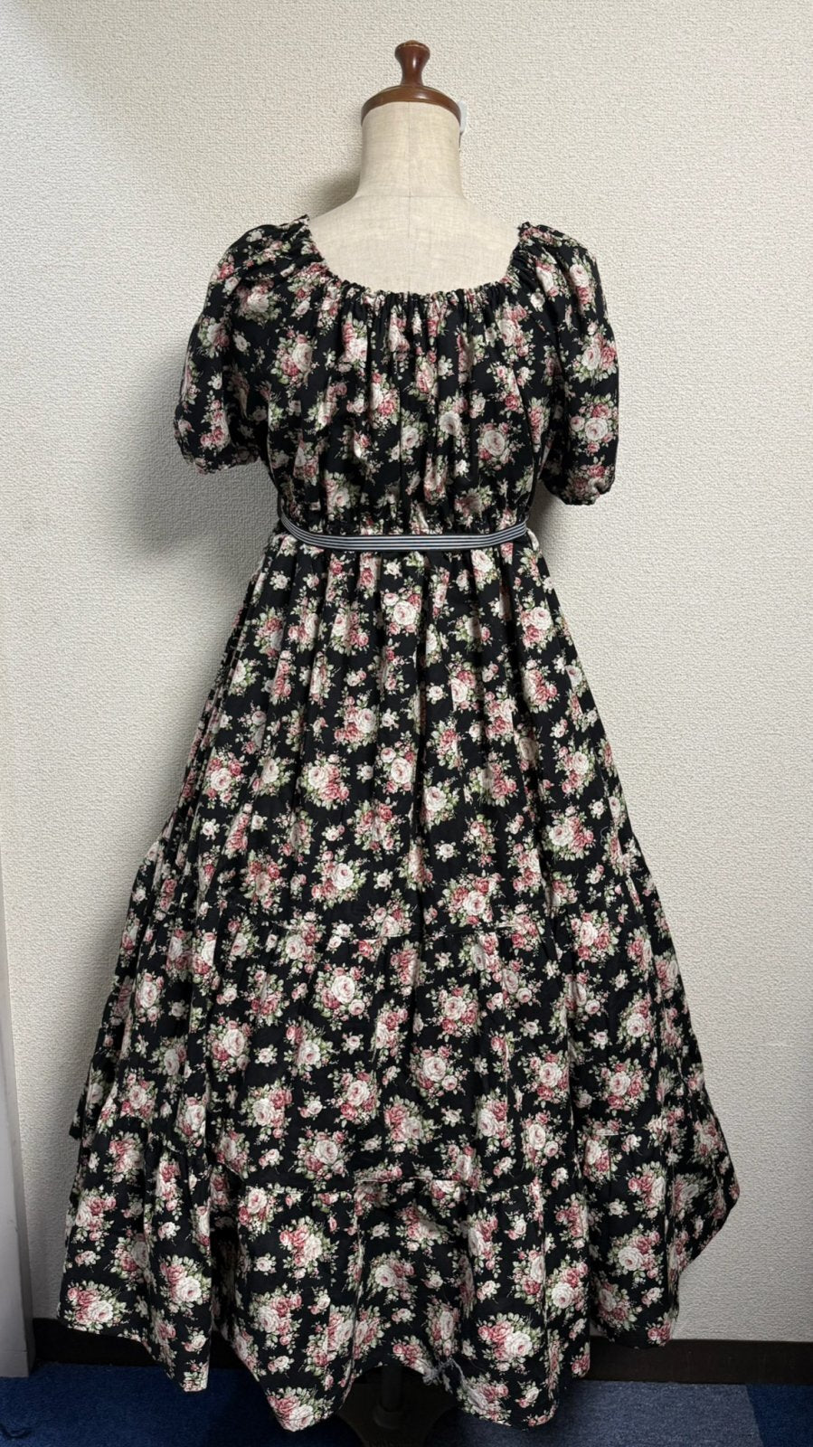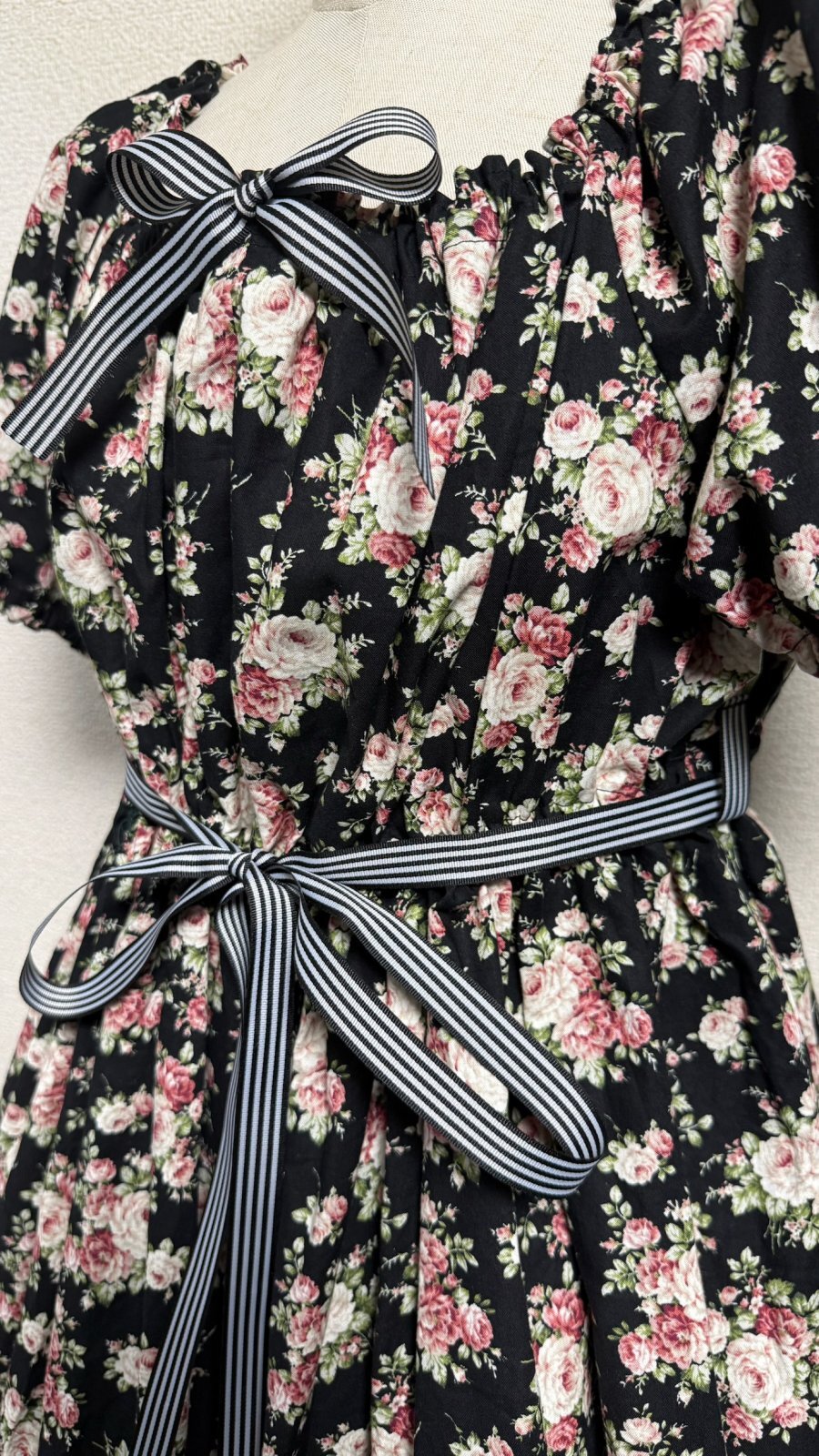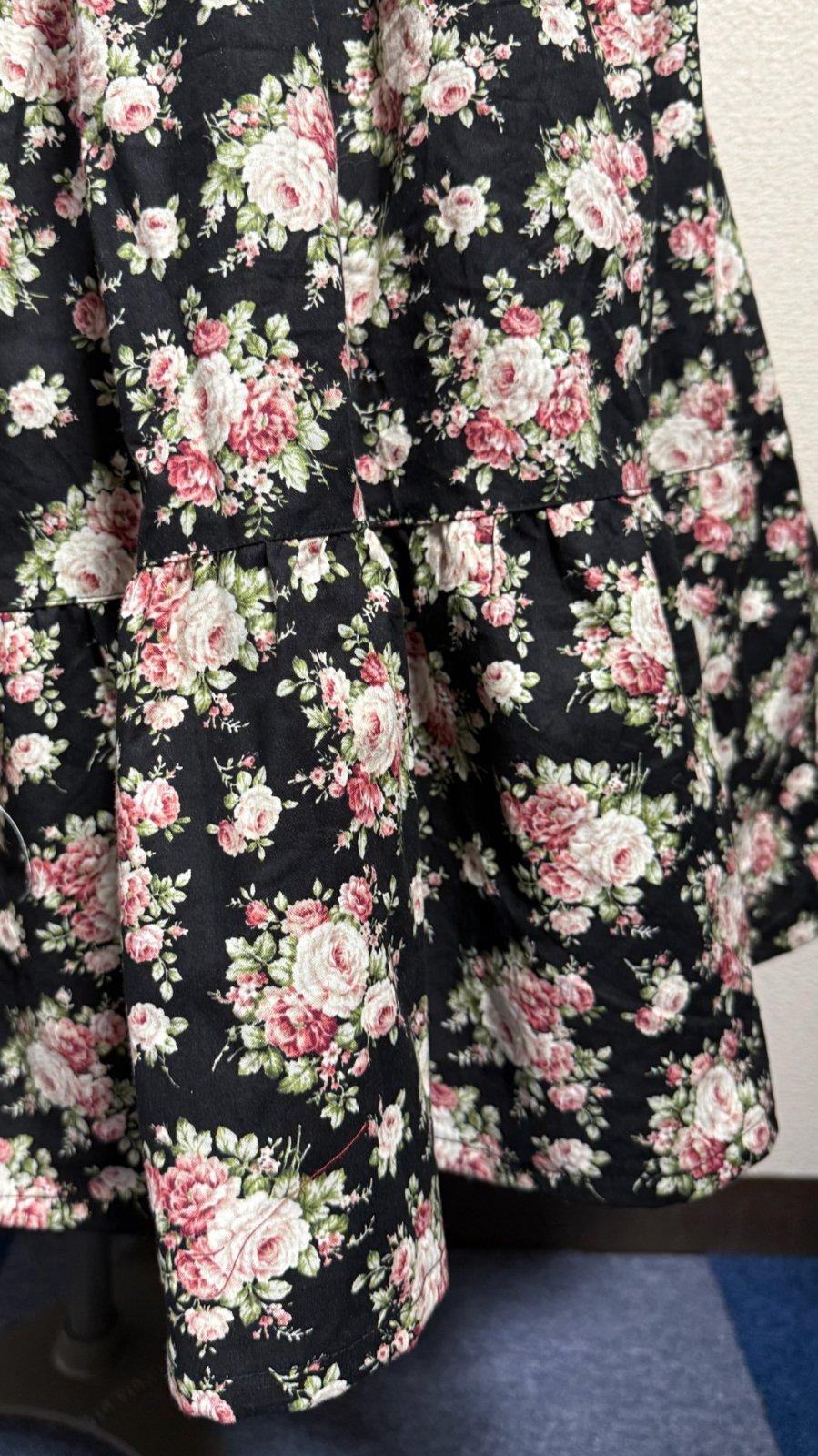 デイリーシャーリングワンピース【花柄黒系・レギュラーサイズ113cm】