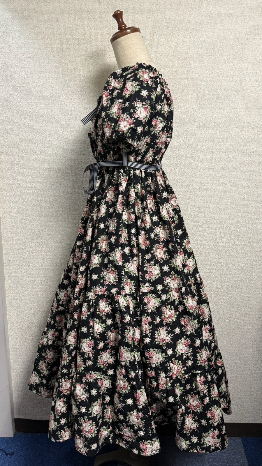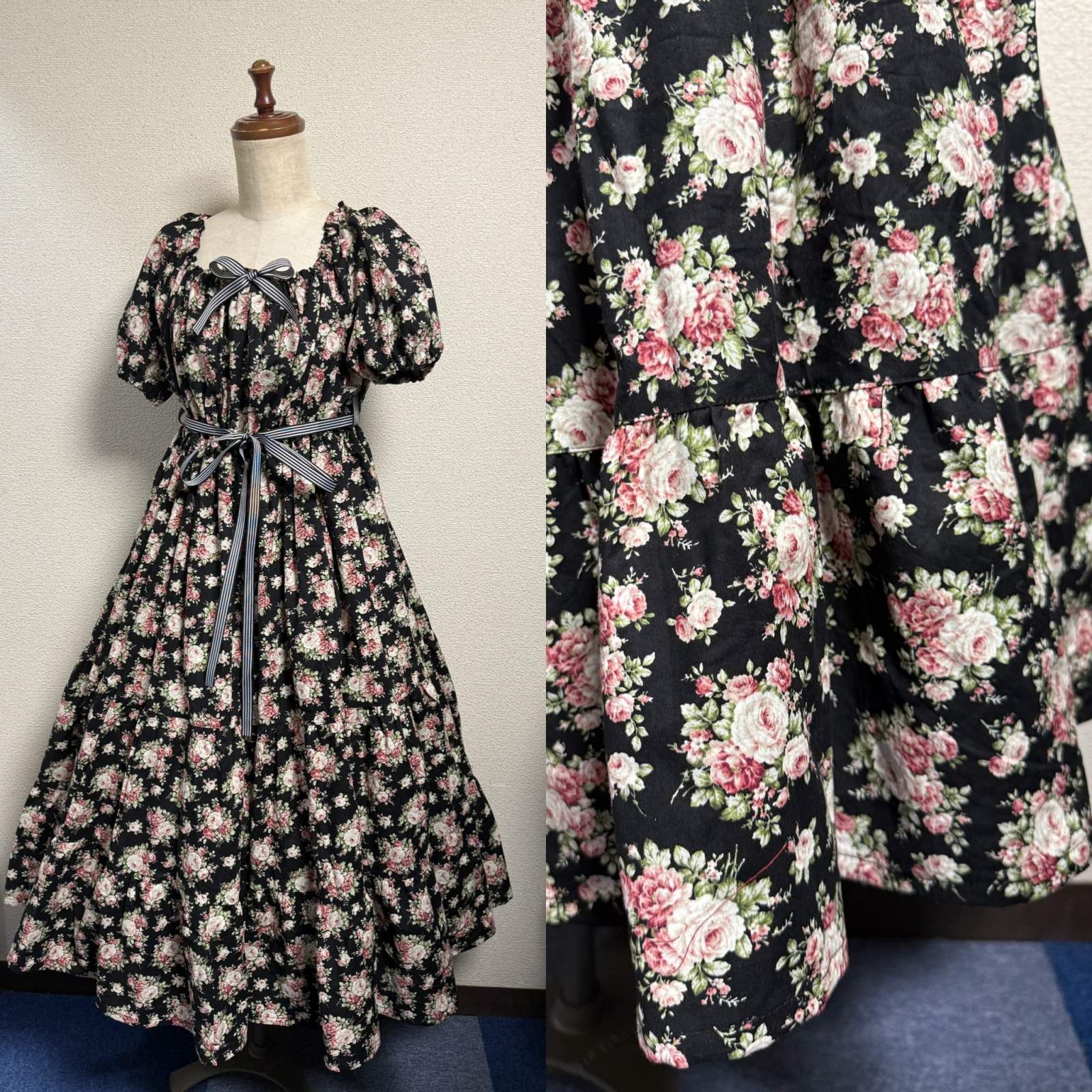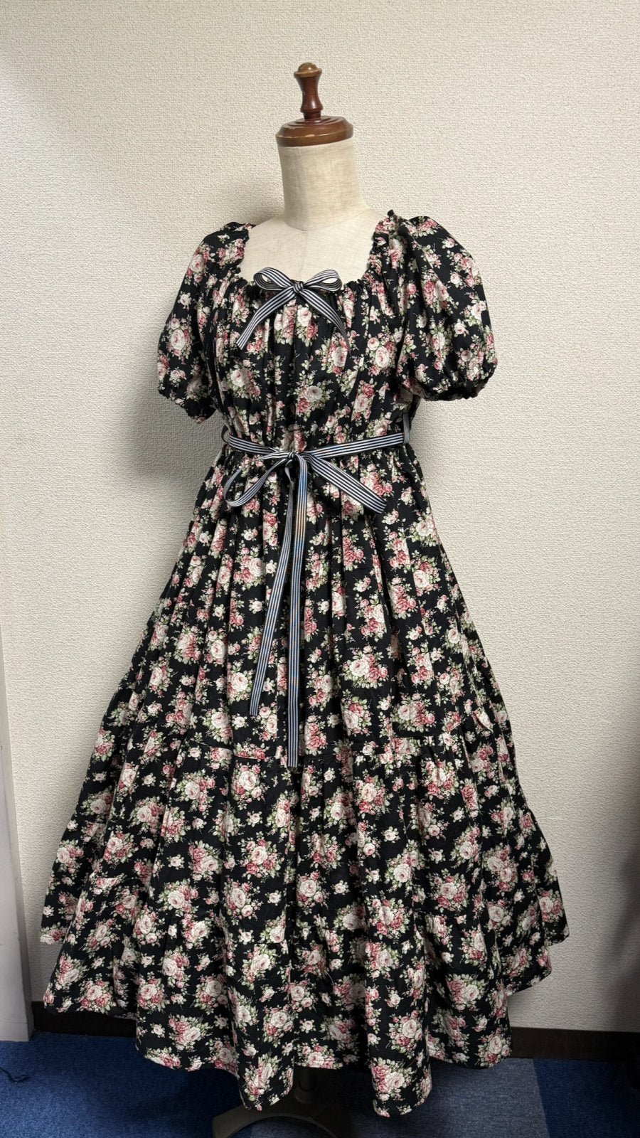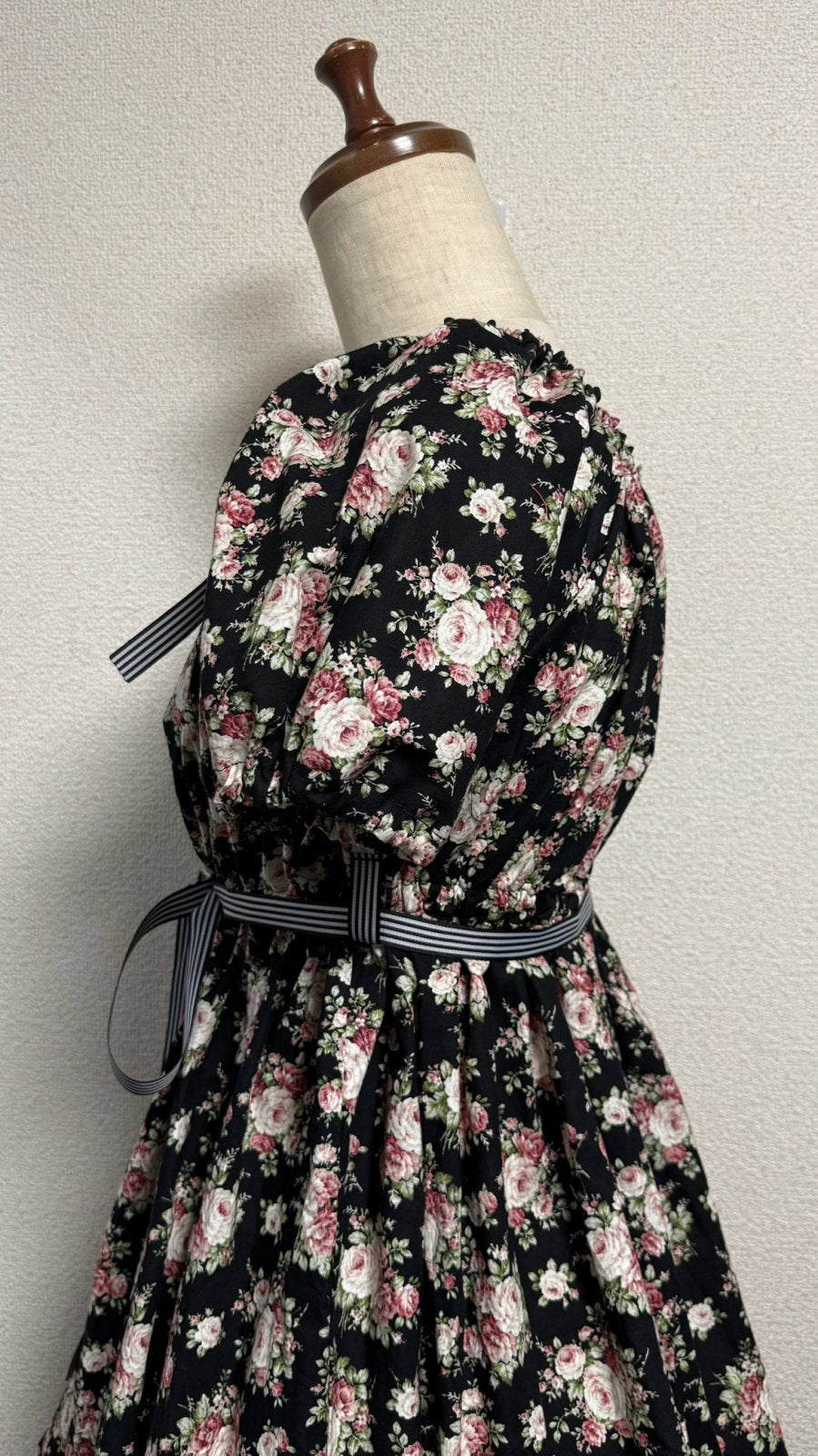 デイリーシャーリングワンピース【花柄黒系・レギュラーサイズ113cm】