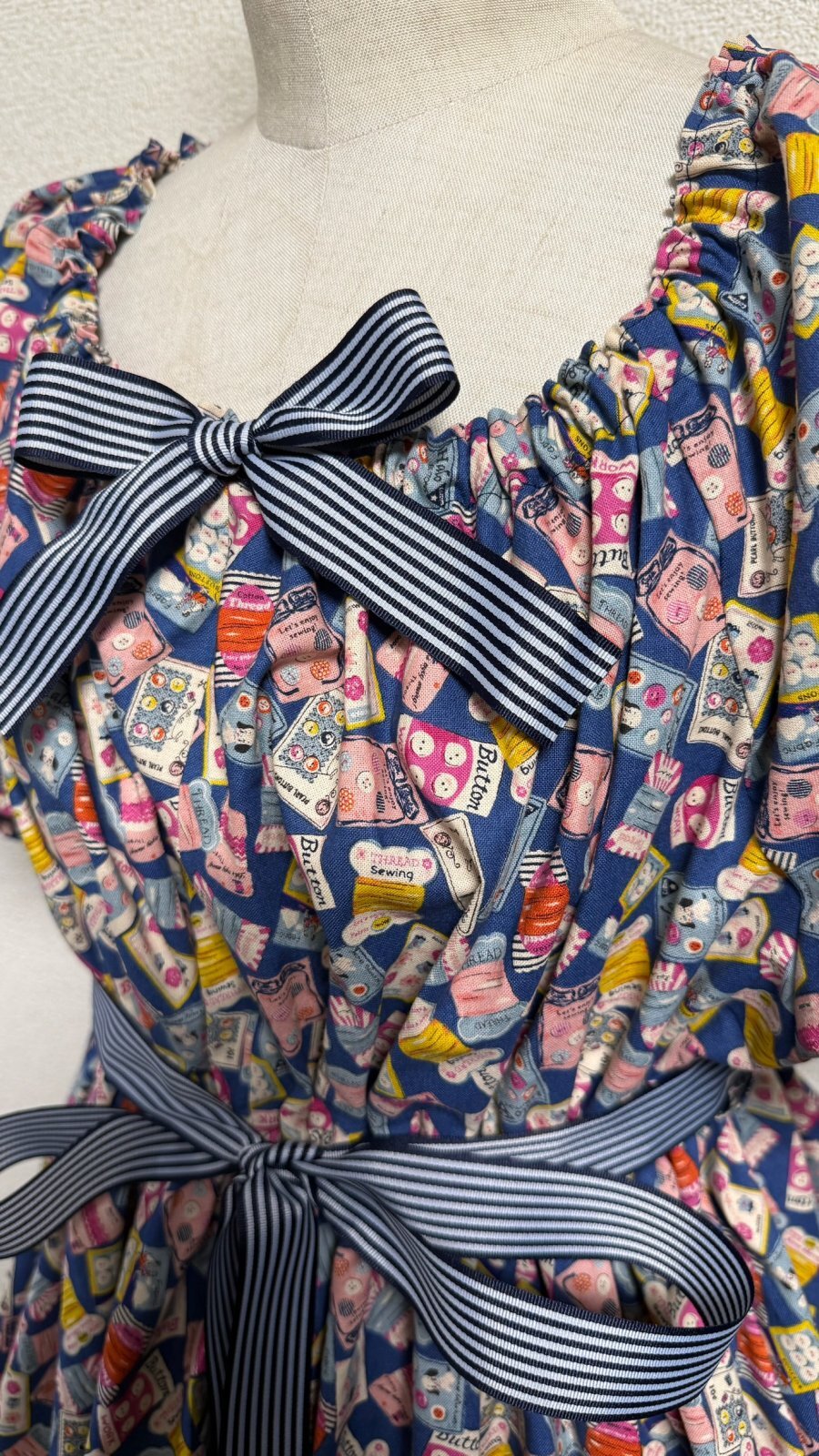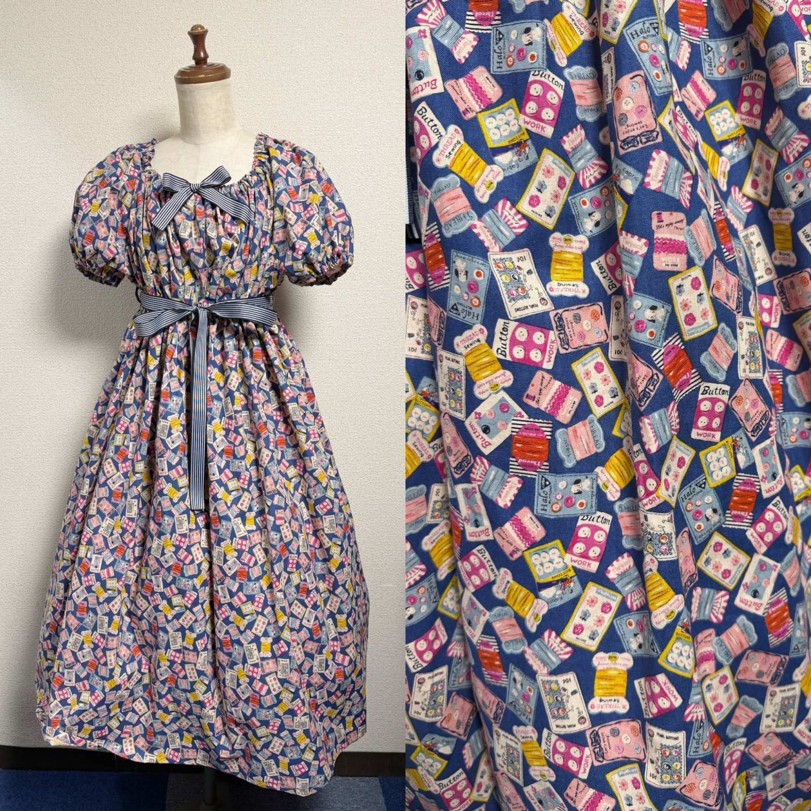 デイリーシャーリングワンピース【ソーイング柄・レギュラーサイズ110cm】
