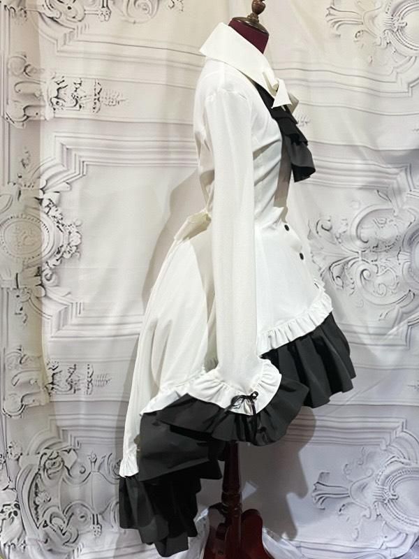 ゴシック調の重厚なアクセサリーの付いたシックでエレガントなブラウス型ワンピースです。