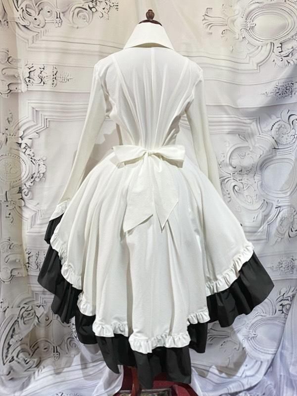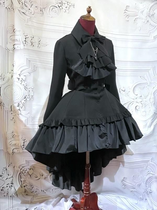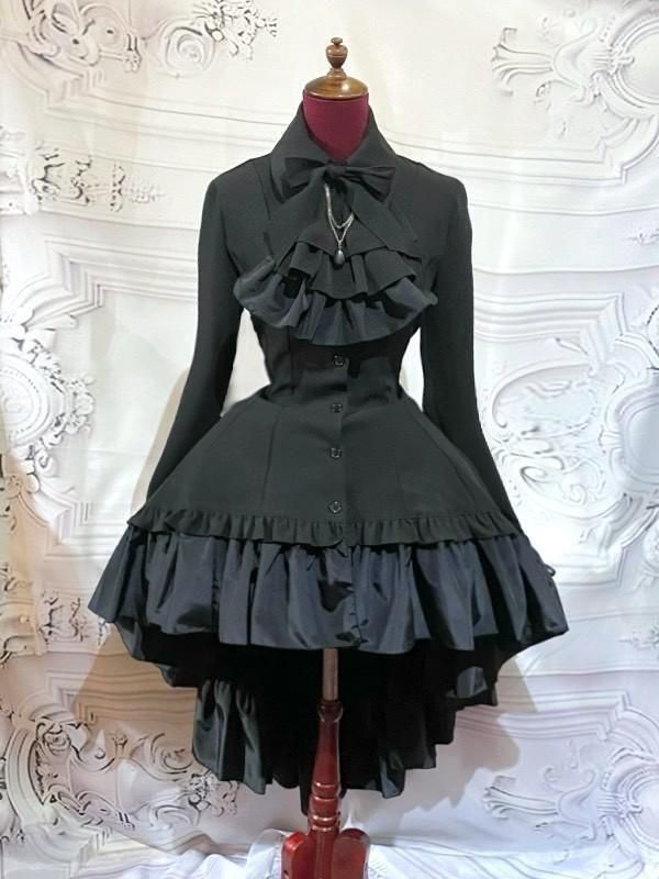 取り外し可能なボリュームたっぷりの華やかなタイが付いた、流れる様なカーブラインが美しいゴシック調のエレガンスワンピース。