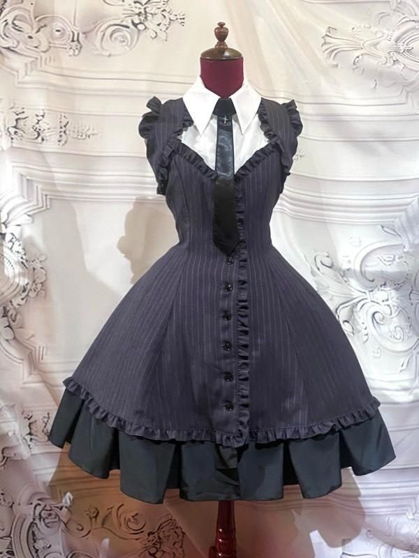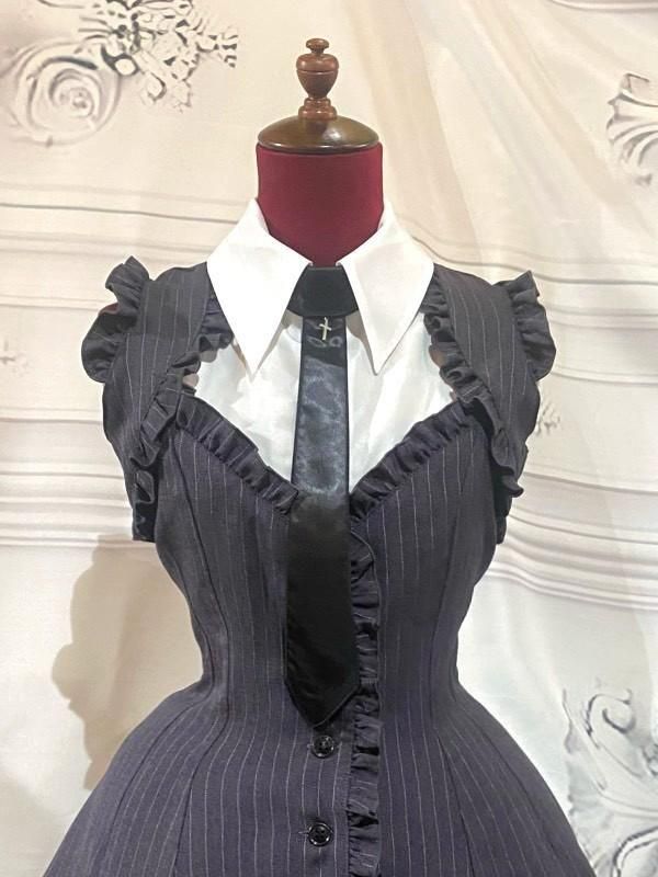 ★ブラウス風の切り替えデザインで、BOXプリーツが表情豊かなゴシック調ワンピースです。