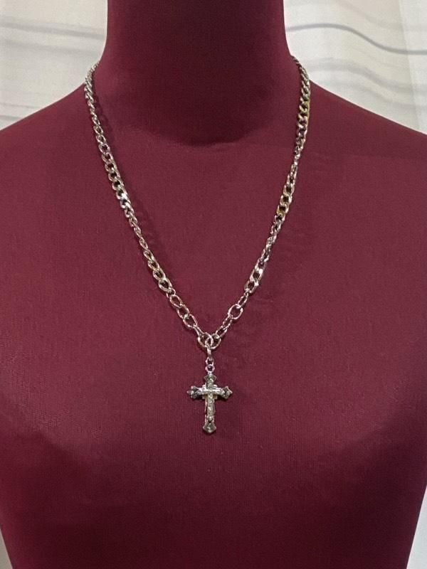ラインストーンが輝く十字架が2つ重ねられたデザインのネックレスです。