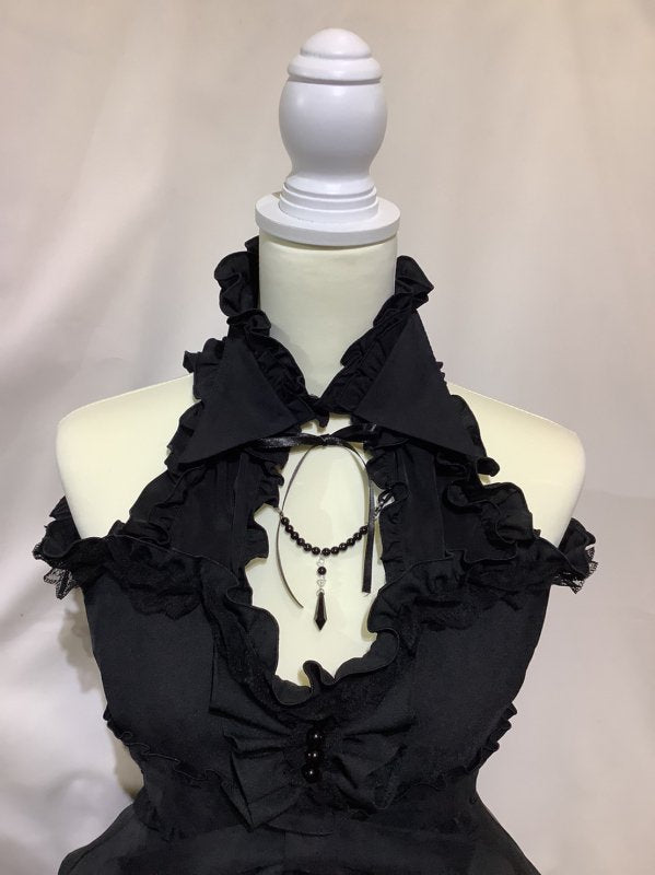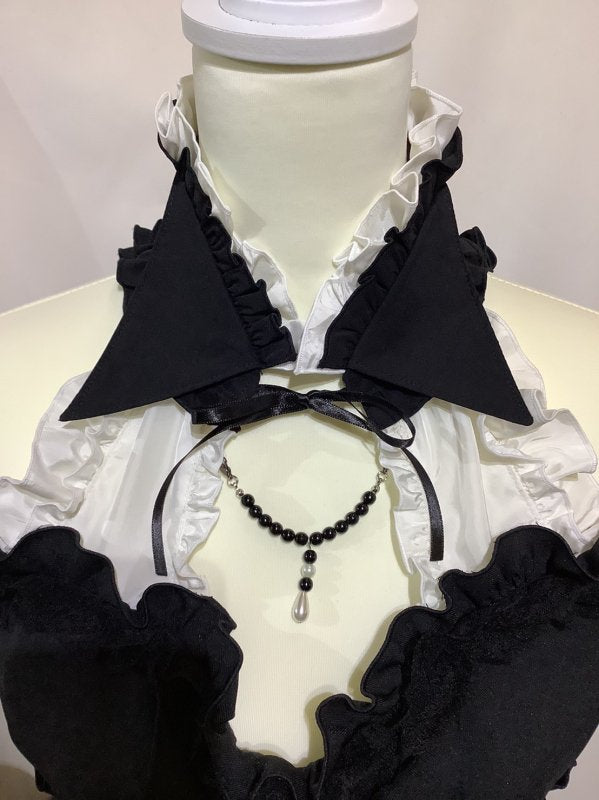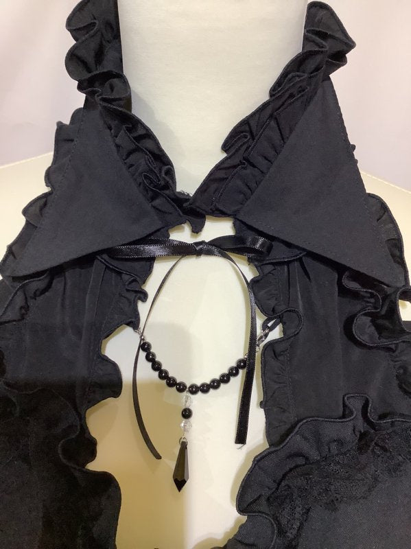 黒×黒シフォンフリル×黒レース-black×black chiffon frill×black lace: