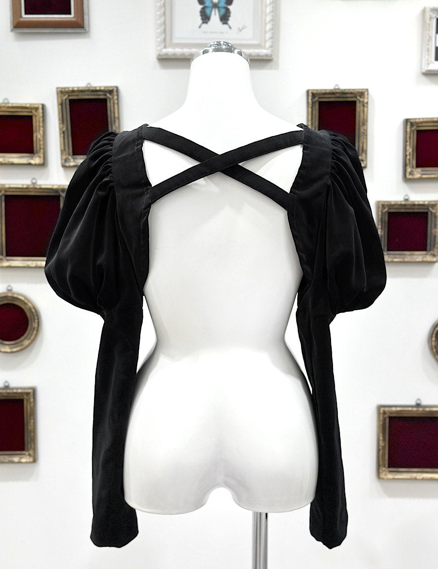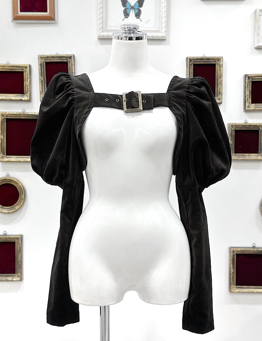 大きく膨らんだパフスリーブが特徴的なボレロです