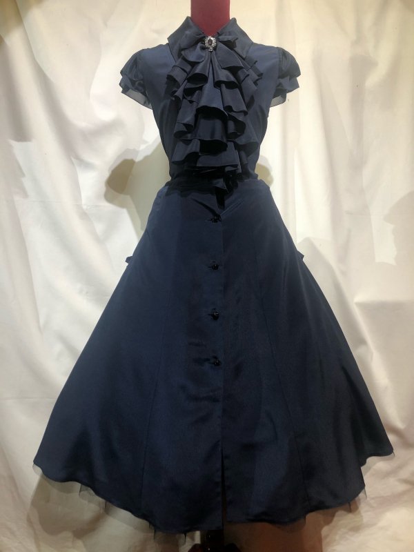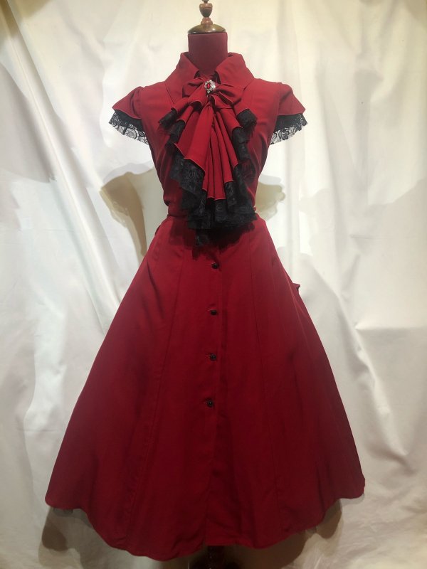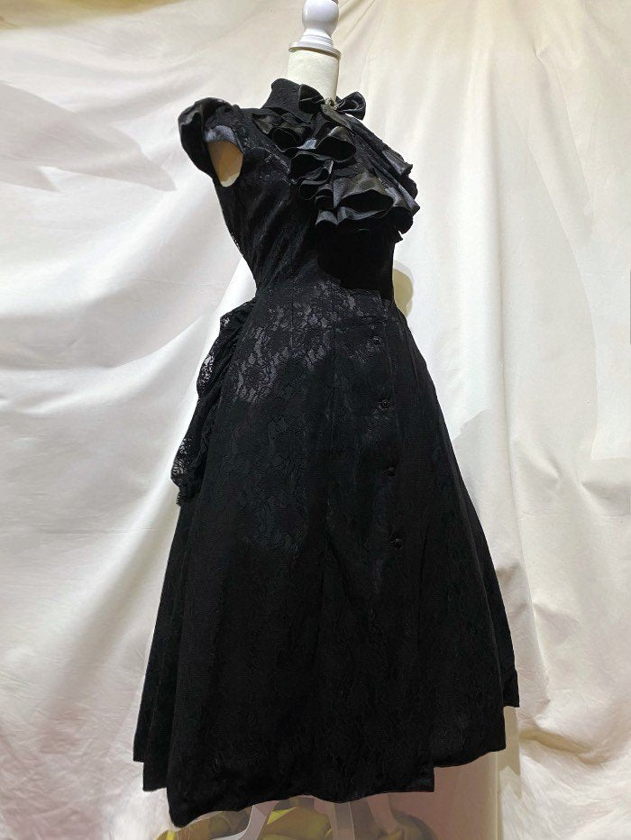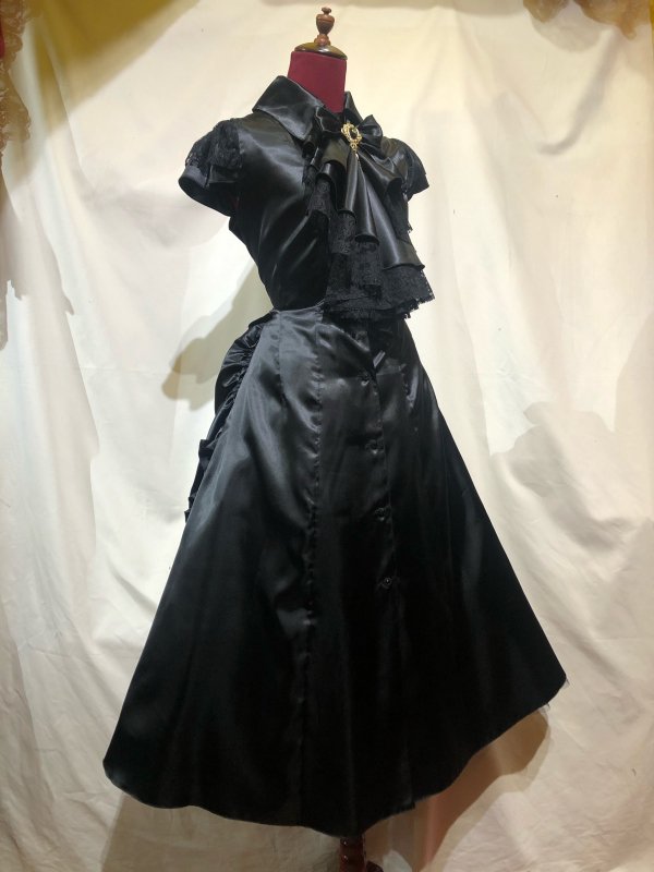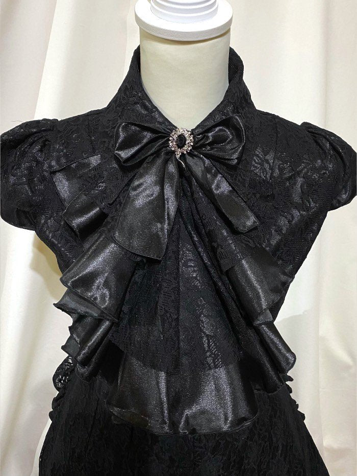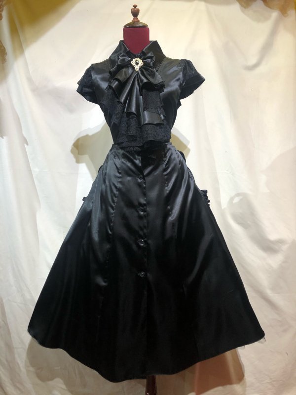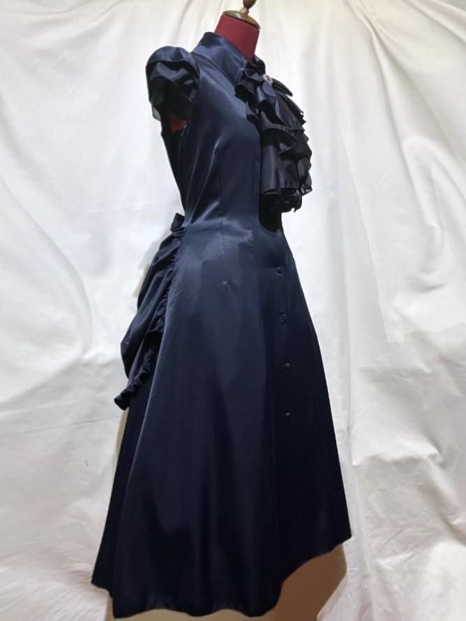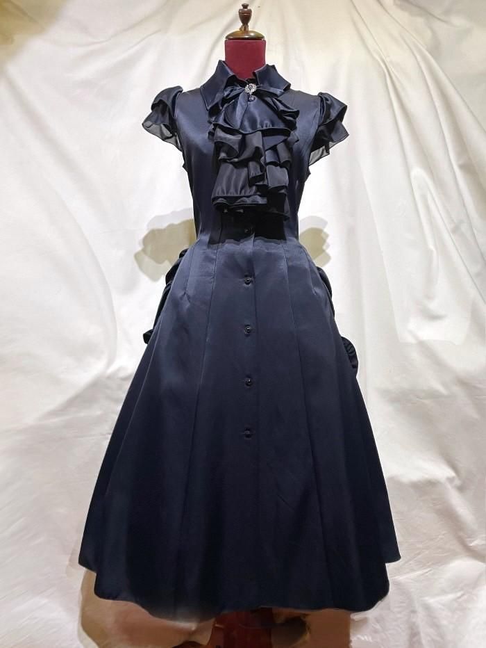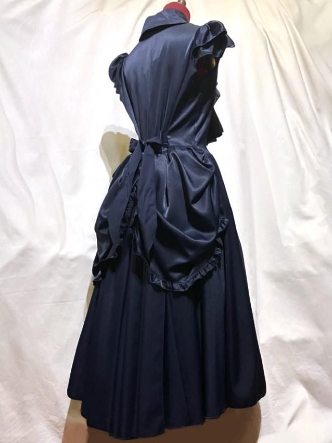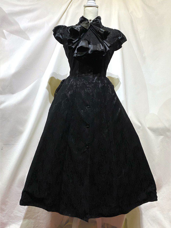★流れるようなドレープが美しいボリュームたっぷりのタイがセットになったゴシック感漂うロングワンピースです。