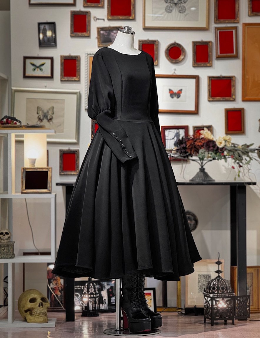 全円に広がるスカートのフレア感が美しいロングワンピースです