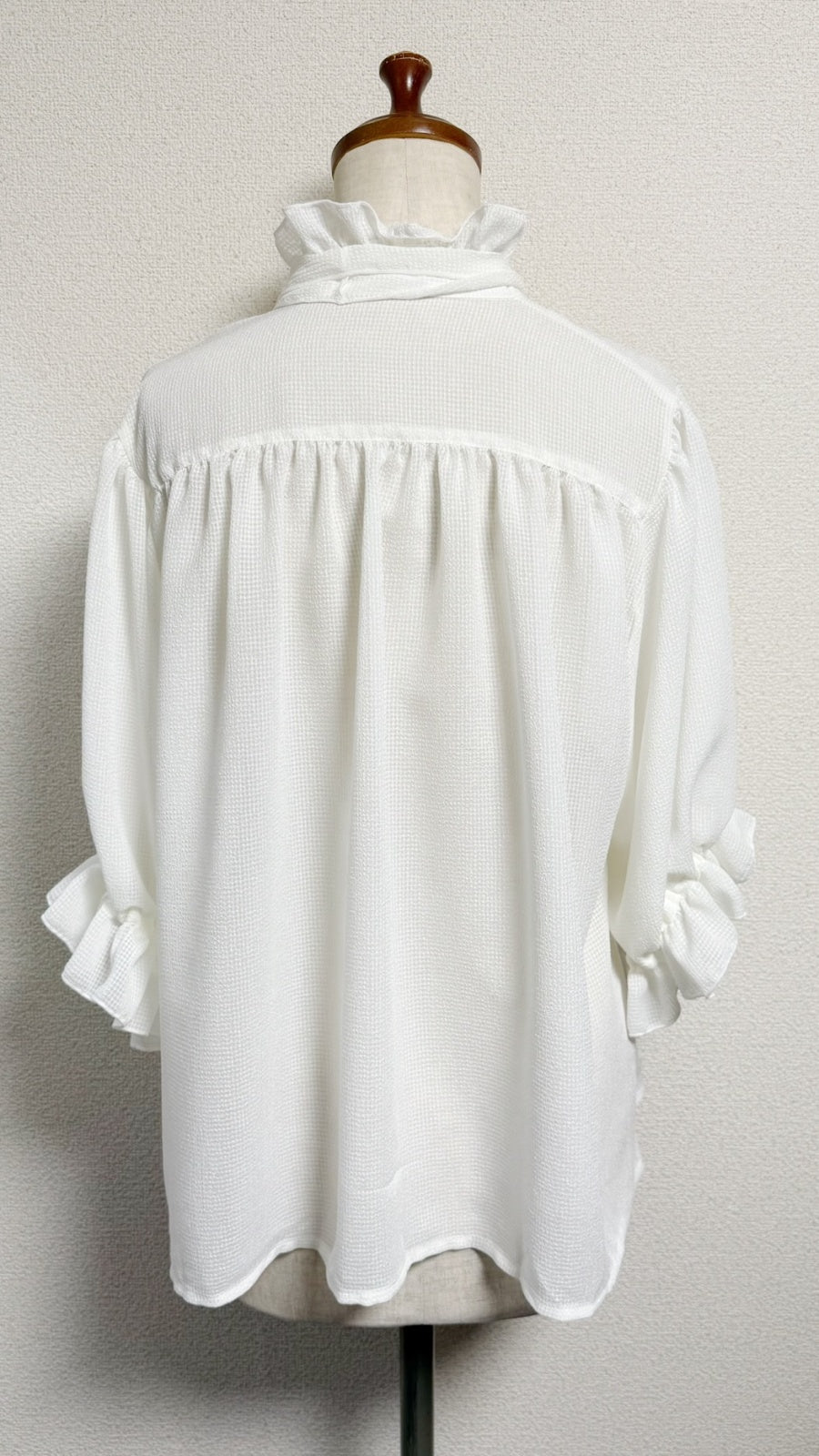 スタンドカラーフリルブラウス【半袖】