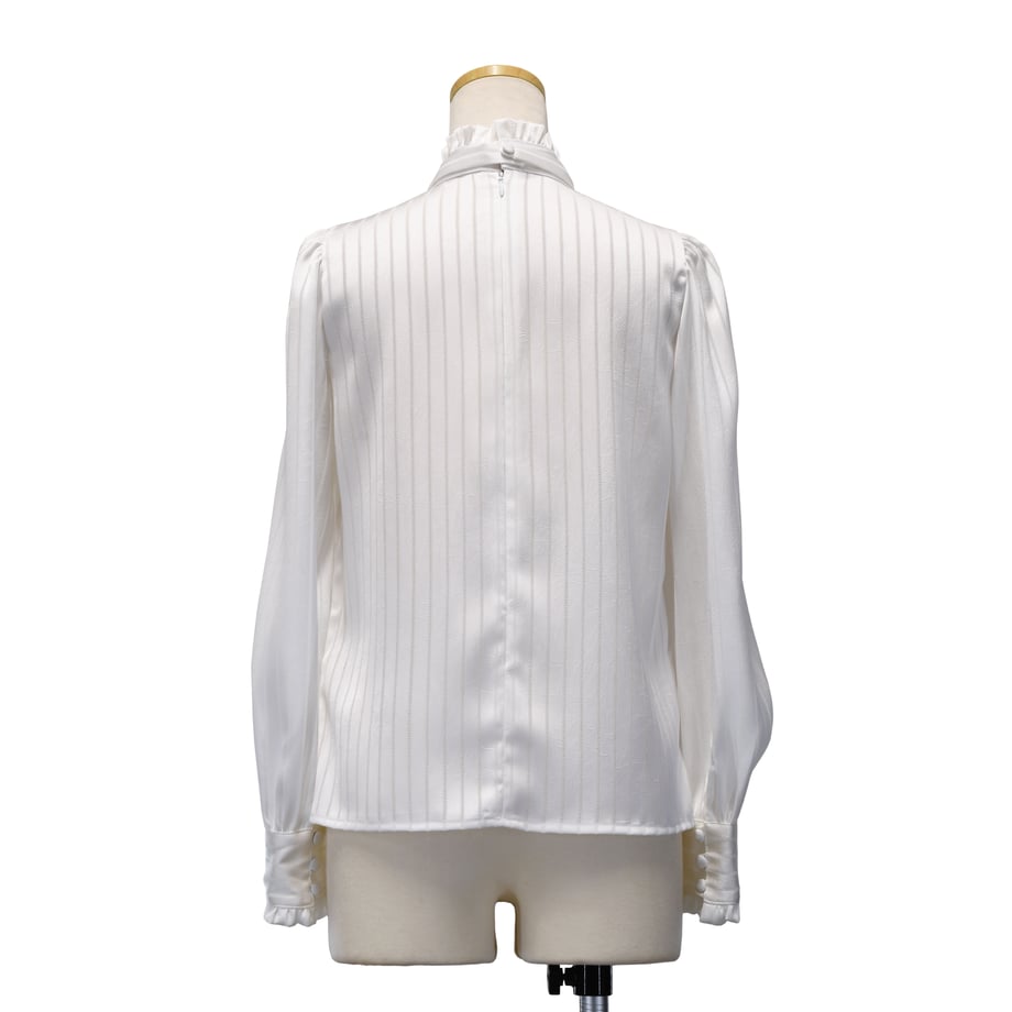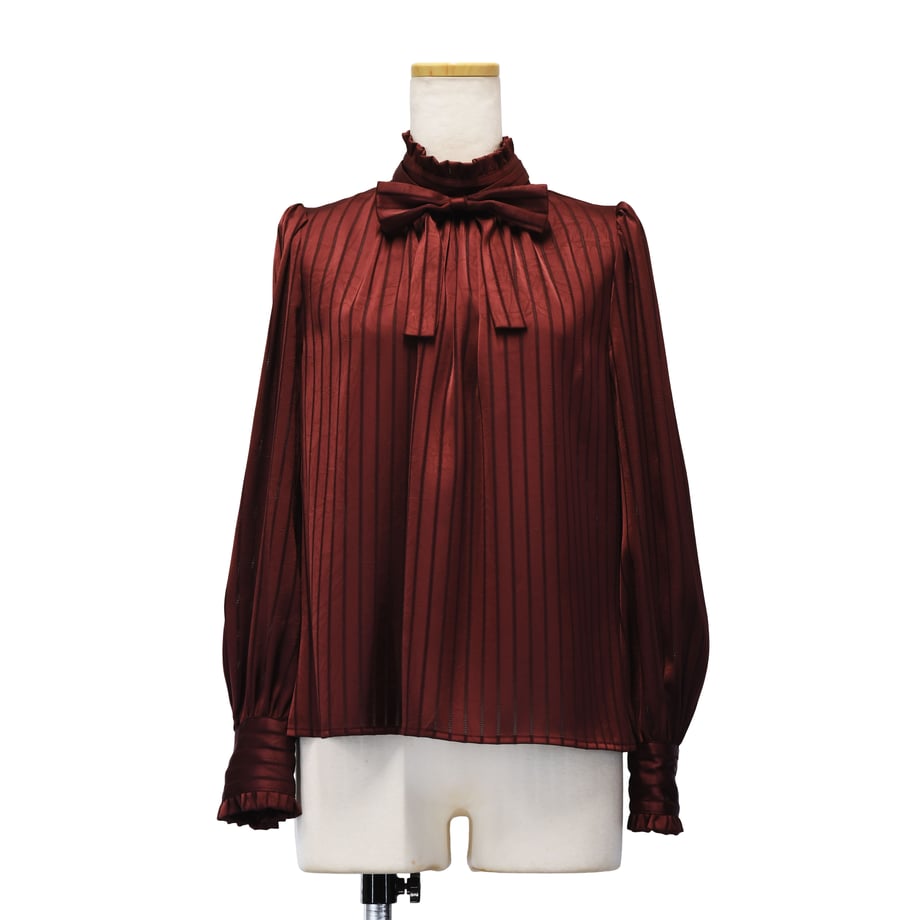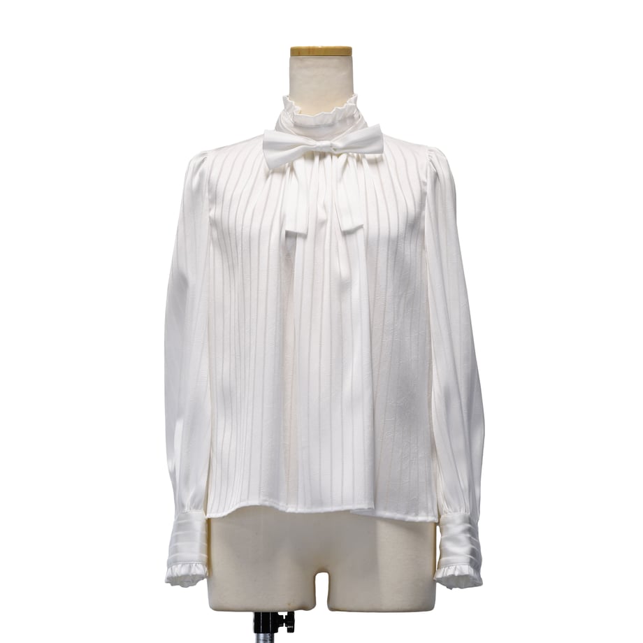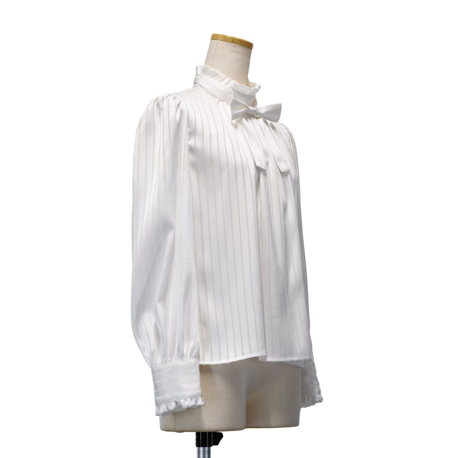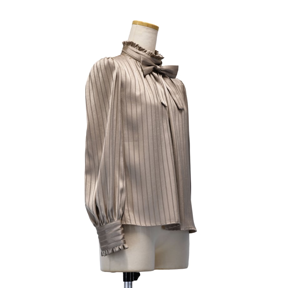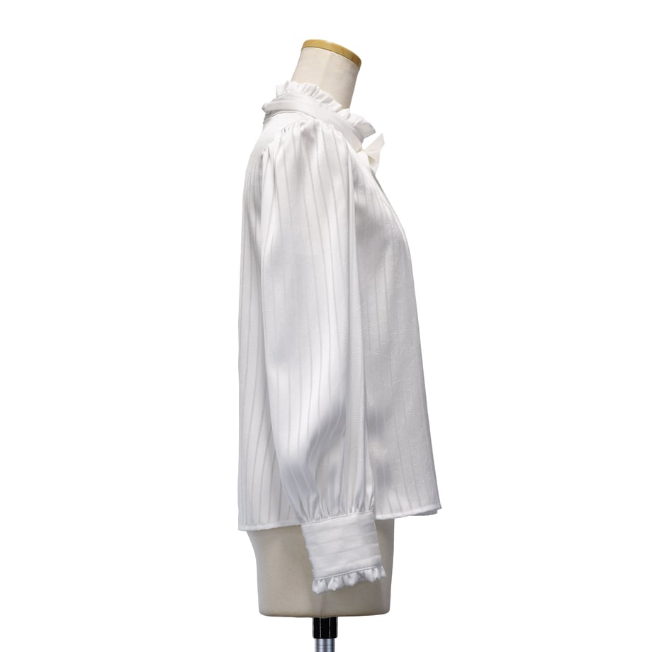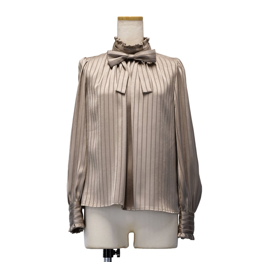 繊細なストライプジャガードが印象的な、クラシカルなギャザーブラウス。