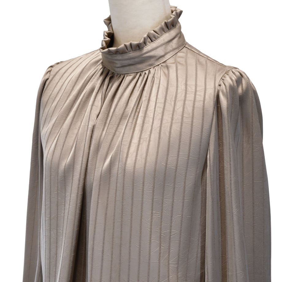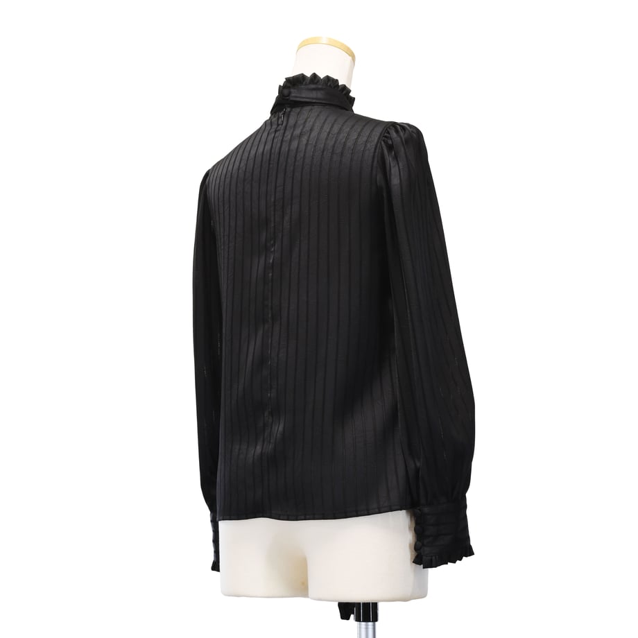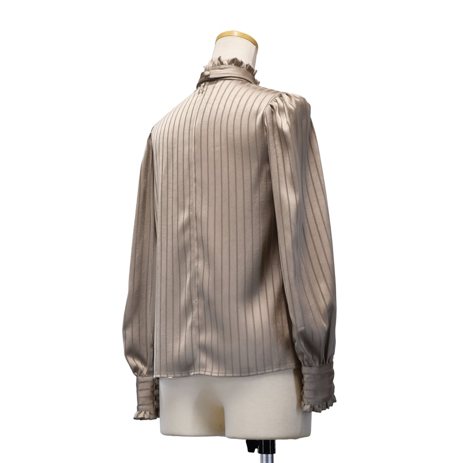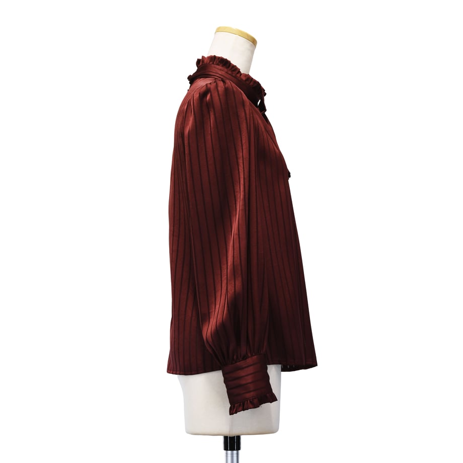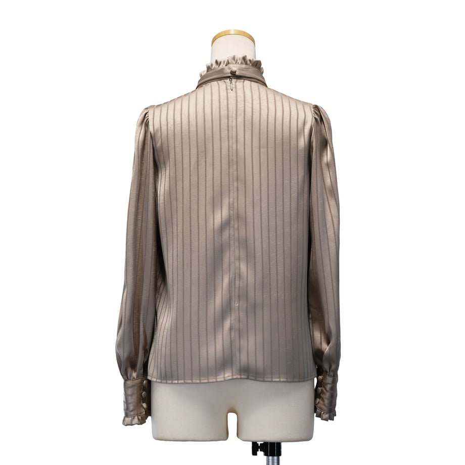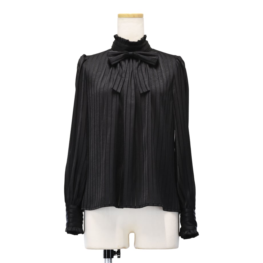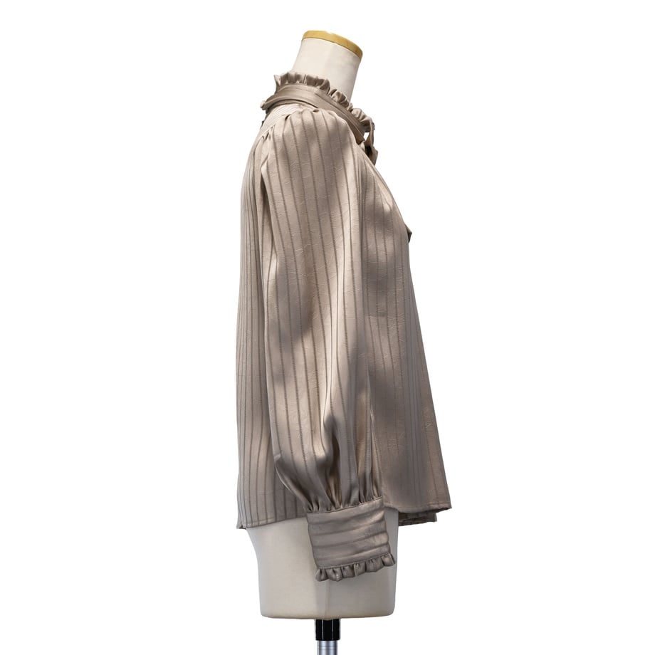繊細なストライプジャガードが印象的な、クラシカルなギャザーブラウス。