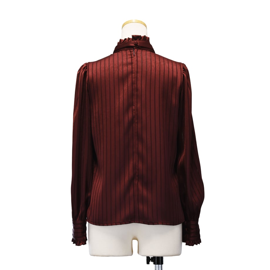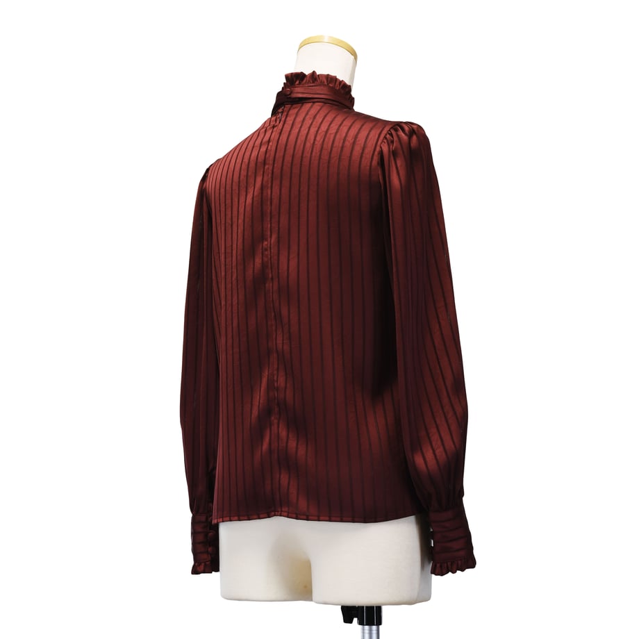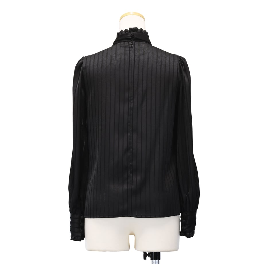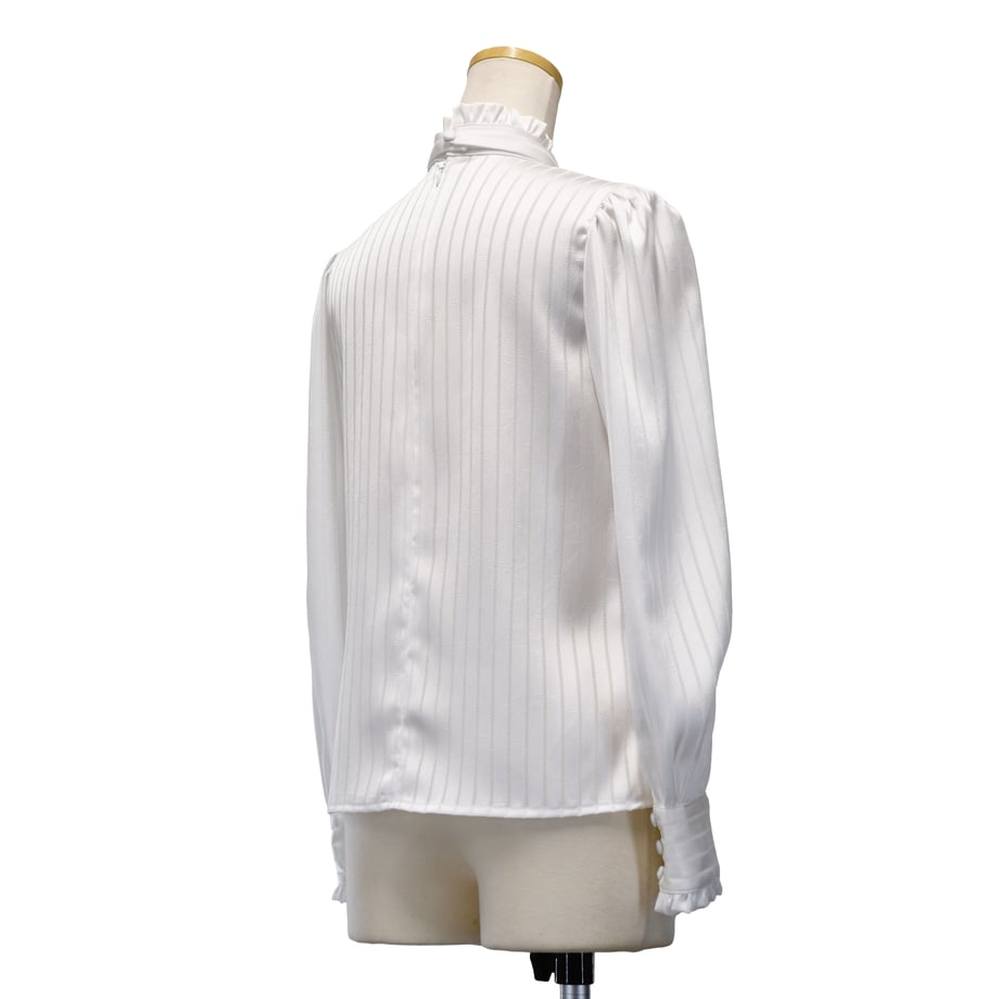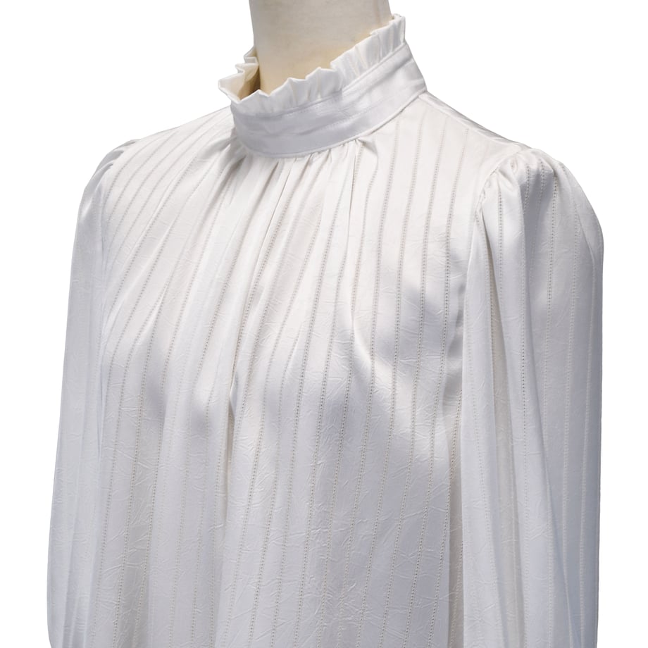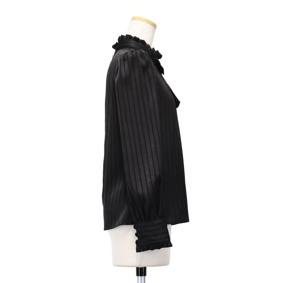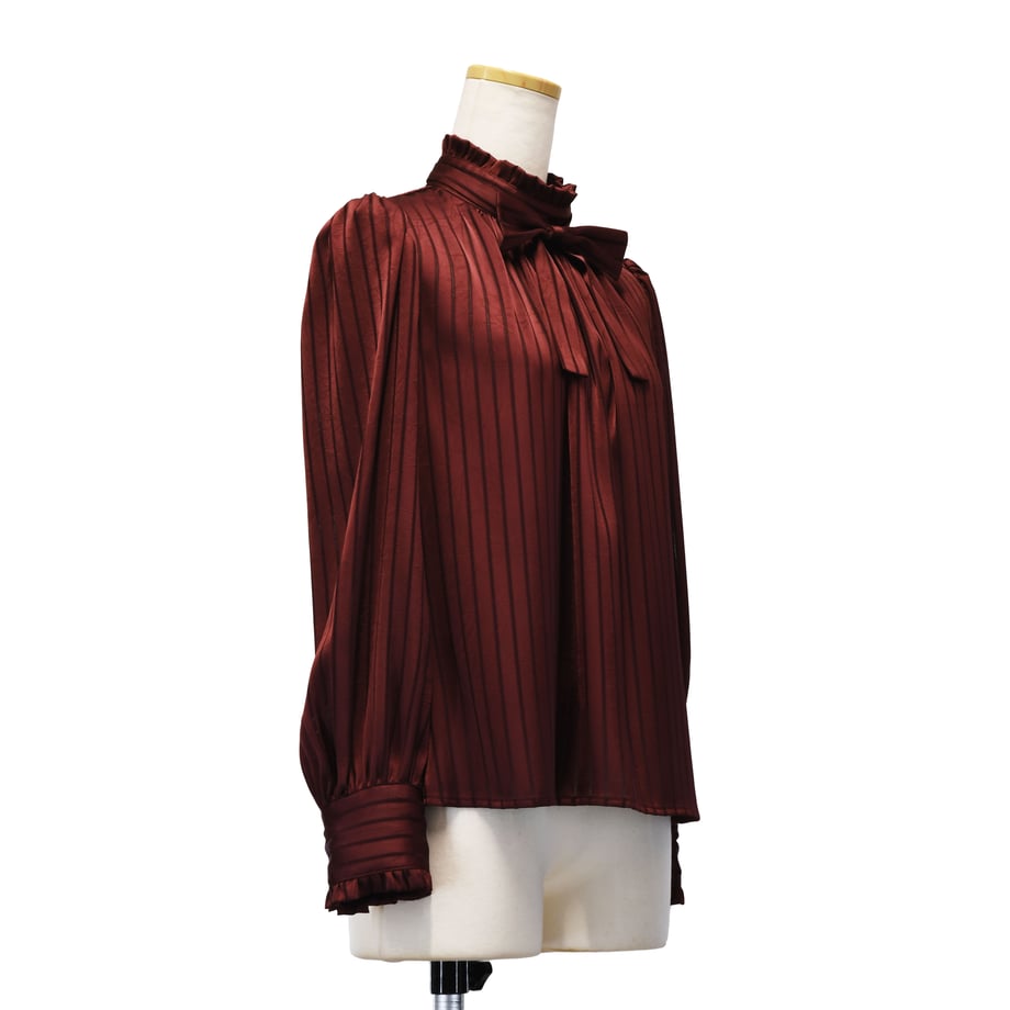 繊細なストライプジャガードが印象的な、クラシカルなギャザーブラウス。