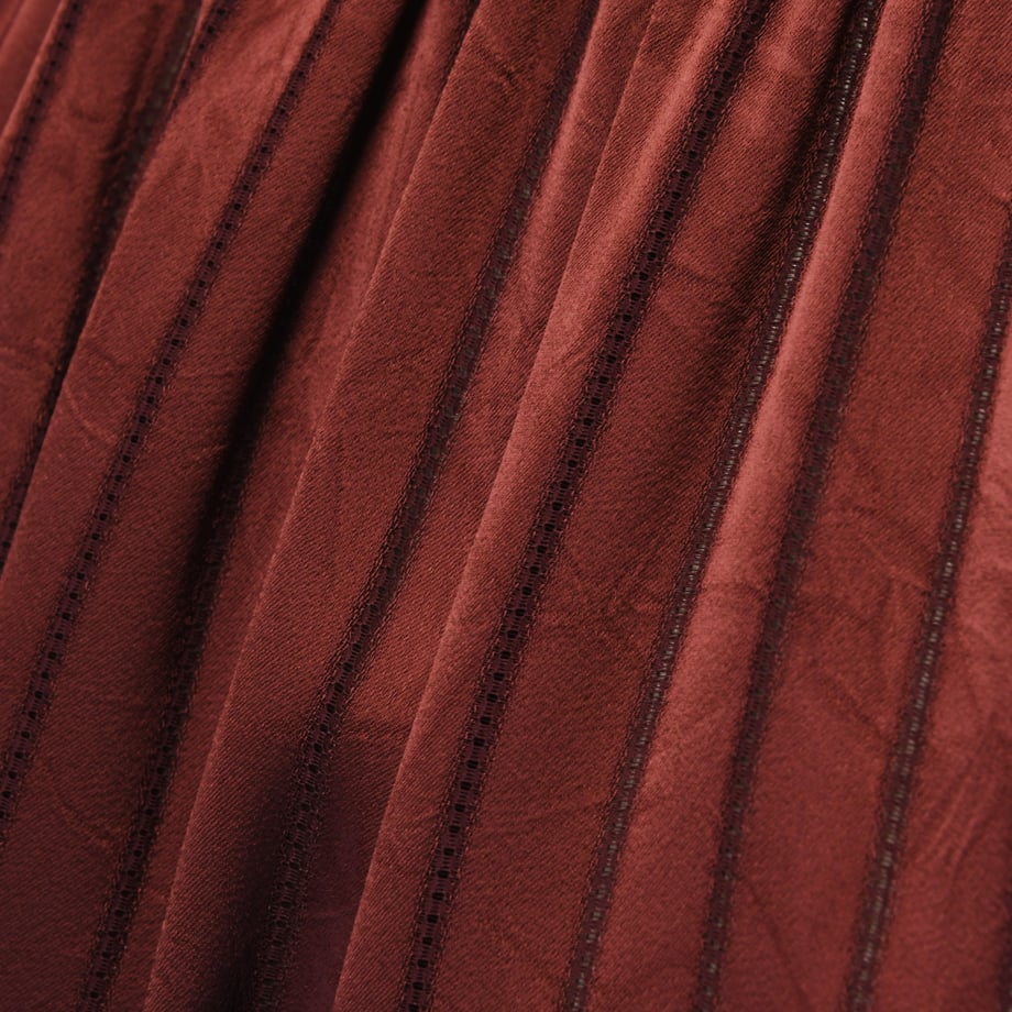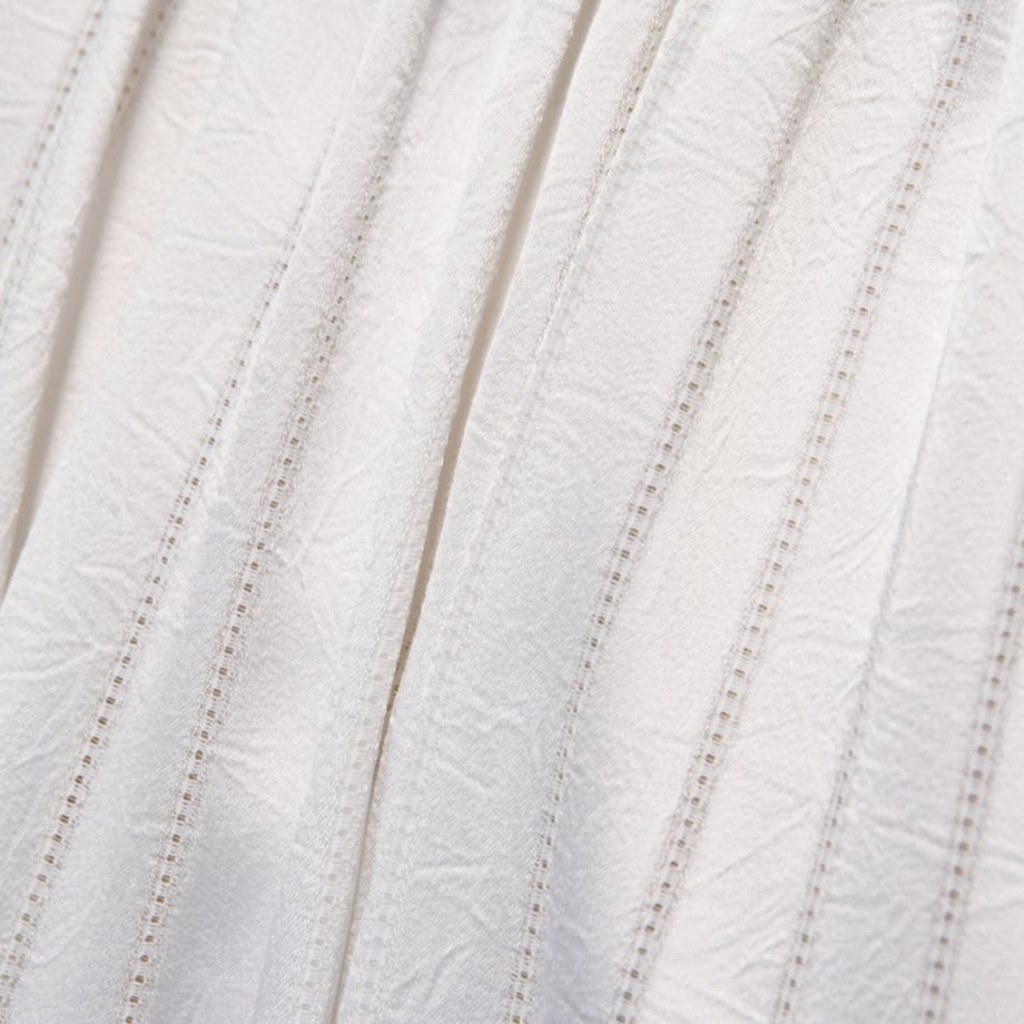 ほどよい光沢感を持ちながら、表面にニュアンスのある織りを施した生地は、華やかさと落ち着きを兼ね備えた上品な仕上がり。 ストライプ部分には透け感のある織りを取り入れ、軽やかで奥行きのある表情を生み出します。