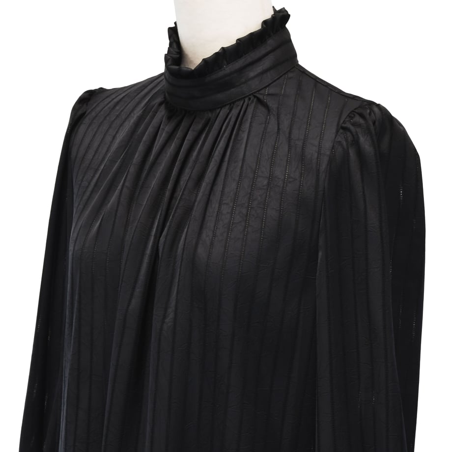 胸元にたっぷりと寄せたギャザーが柔らかな立体感を作り出し、ジャンパースカートやコルセットと合わせた際には、バスト周りがふんわりと美しいシルエットに。