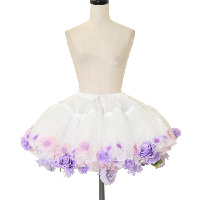 【USED】【SKY RABBIT×BOGUTA】オーガンジー花パニエ(45cm丈/ホワイト×パープル/花パーツ2枚)