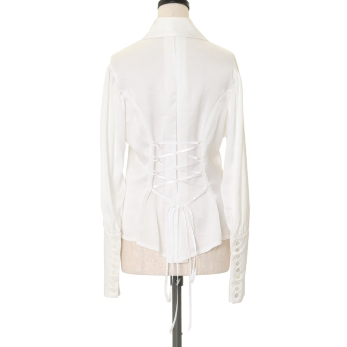 Product status | 使用感あり 襟ぐり・袖口に黄ばみあり 後ろ襟にシミあり 第6ボタンホール横に糸つれあり |