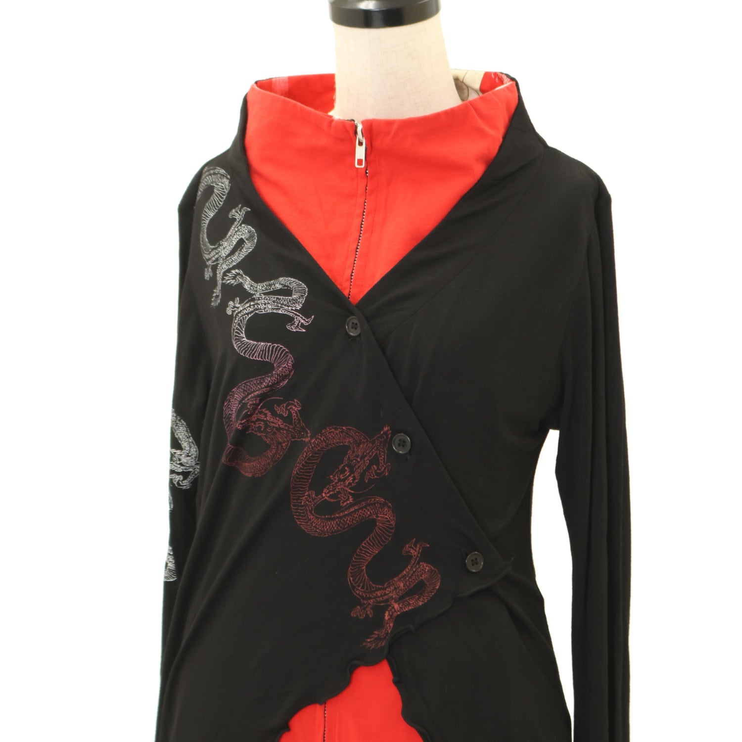 【USED】gouk ドラゴンプリントレイヤードカットソー