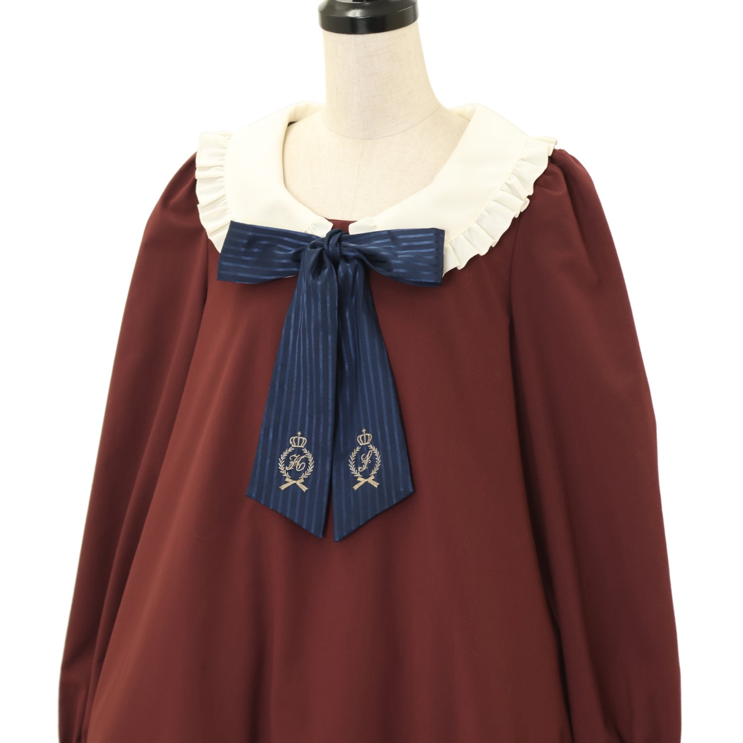 【USED】【サイズ2】ネクタイ刺繍フリルカラーワンピース