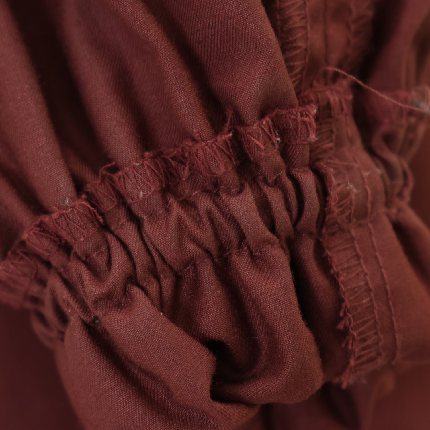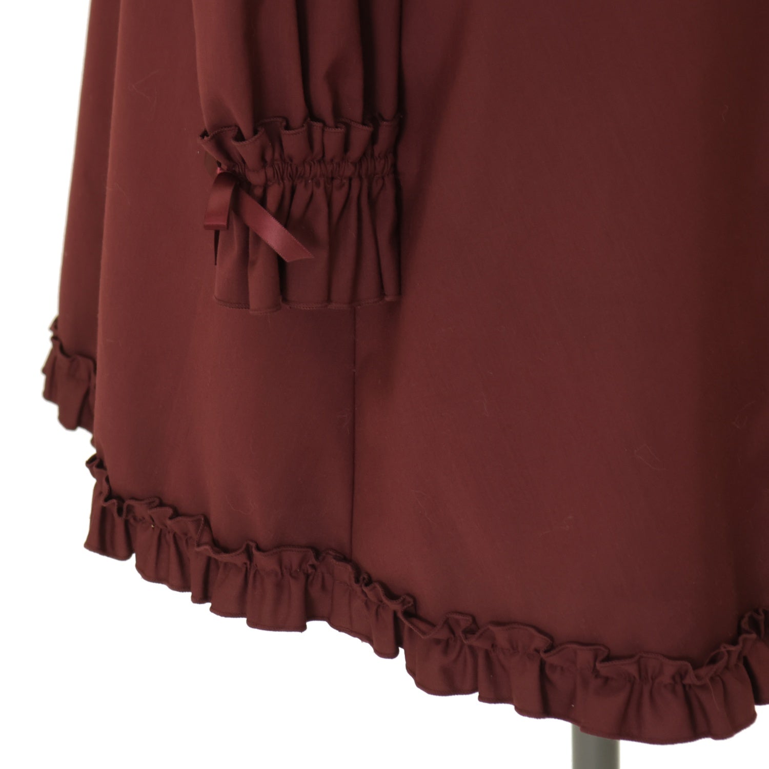 Product status | 使用感あり ウエストリボン欠品 繊維付着 襟に黄ばみ 一部に毛羽立ち 袖口内側に汚れ |