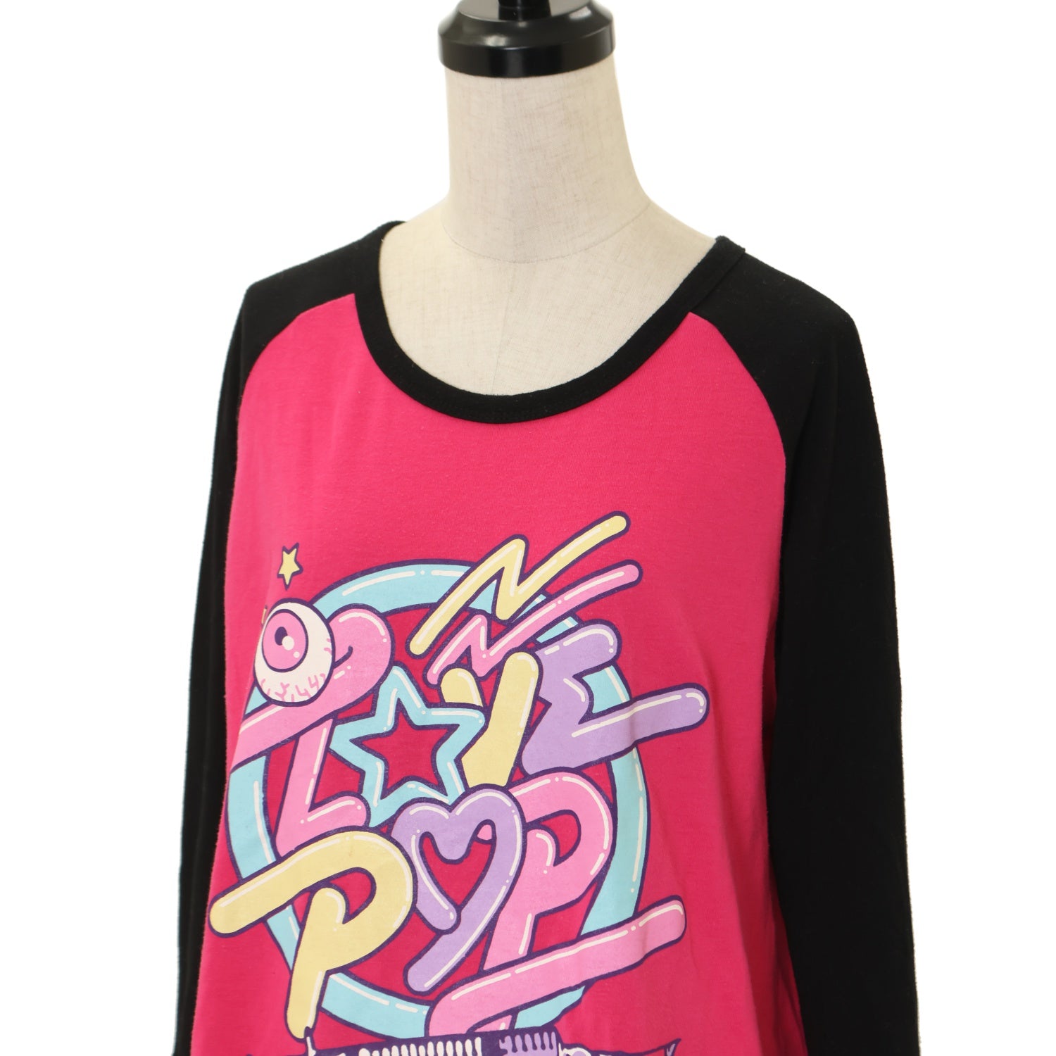 【USED】【Mサイズ】ネオンロゴプリントラグランTシャツ