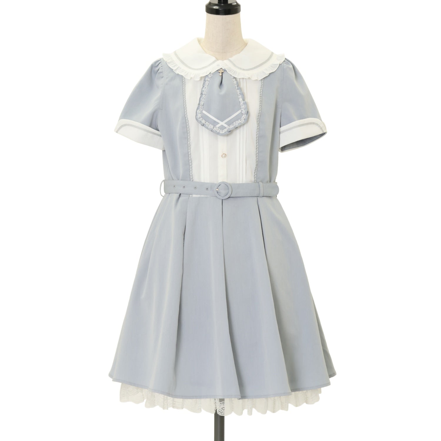 【USED】【サイズ2】レイヤード風バイカラー半袖ワンピース