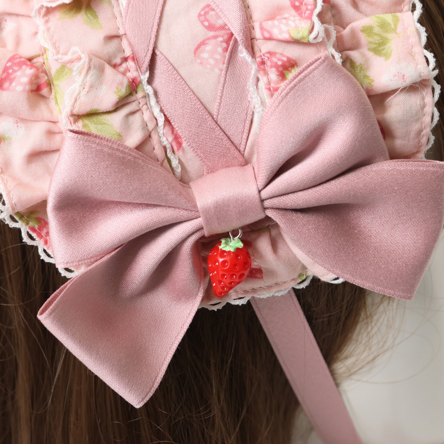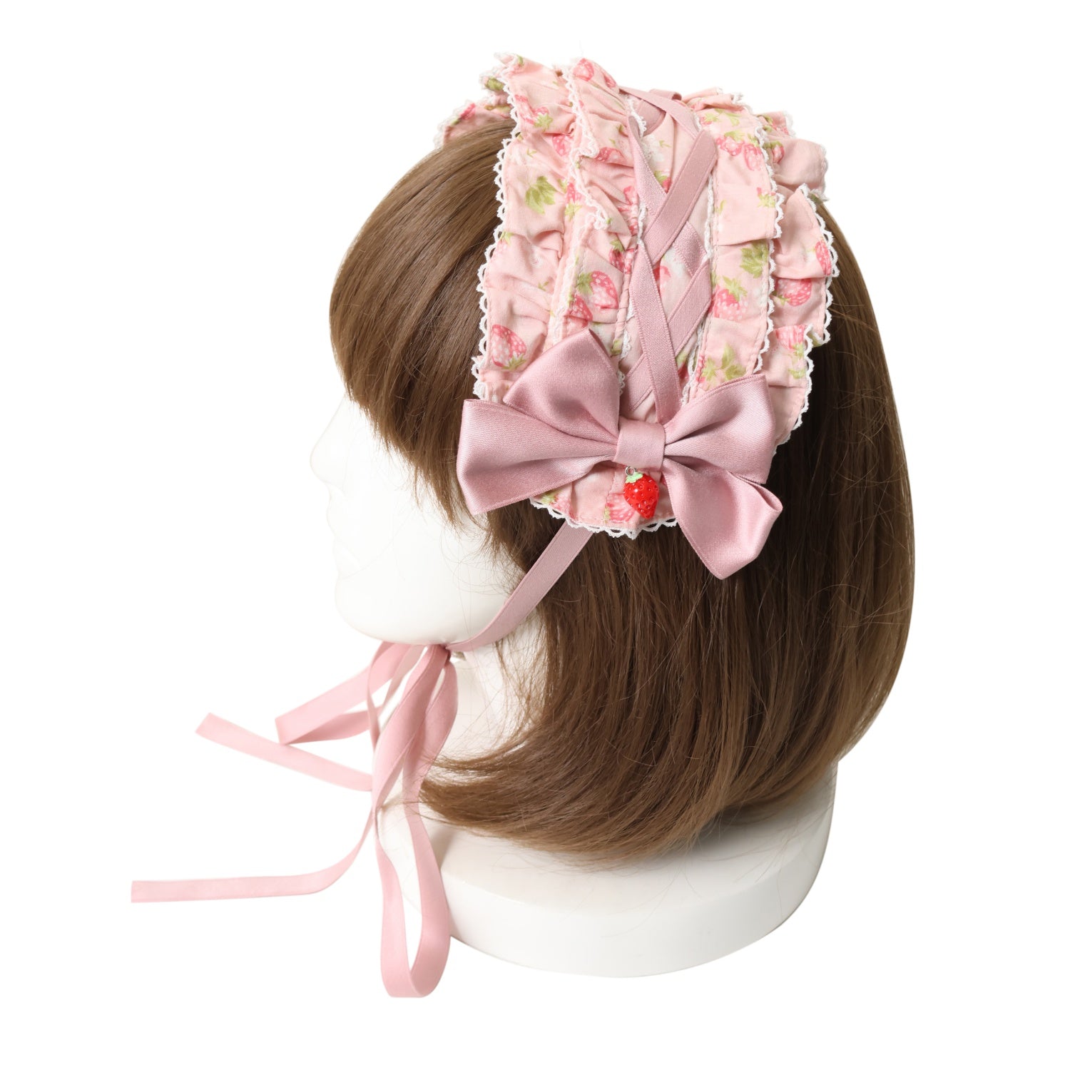 【USED】レースアップフリルヘッドドレス(ピンクストロベリープリント)