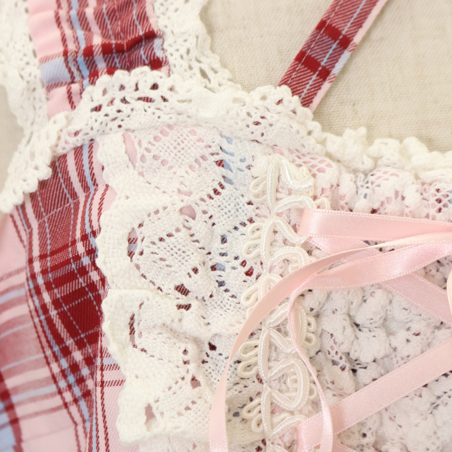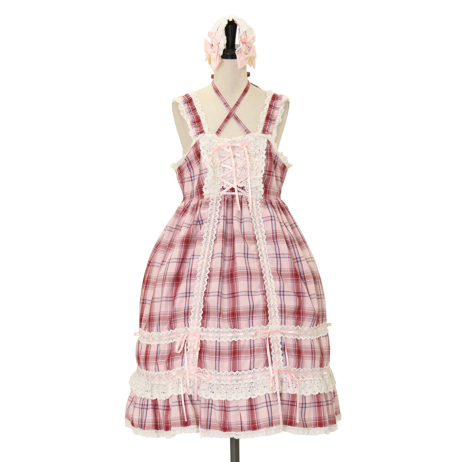 【USED】タータンチェックベビードール&プリンセスドロップヘッドドレスセット