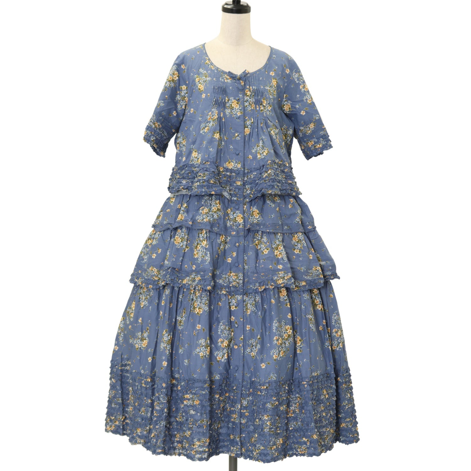 【USED】ブーケプリントティアードフリルワンピース