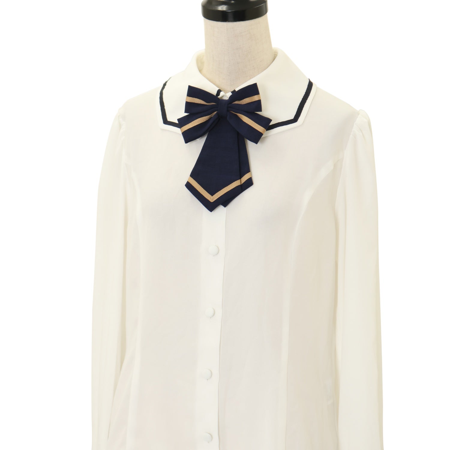 【USED】【White/Mサイズ】リボンタイ付きブラウス