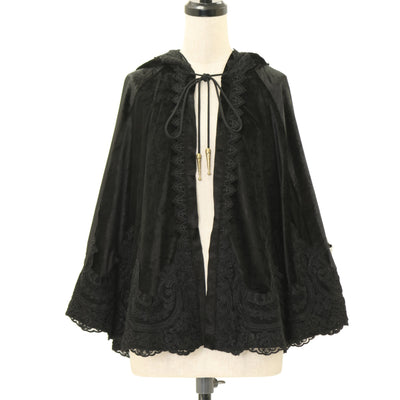 【USED】別タイ付きボリュームレースヴァンパイアマント:黒×ヴィクトリアンブローチ