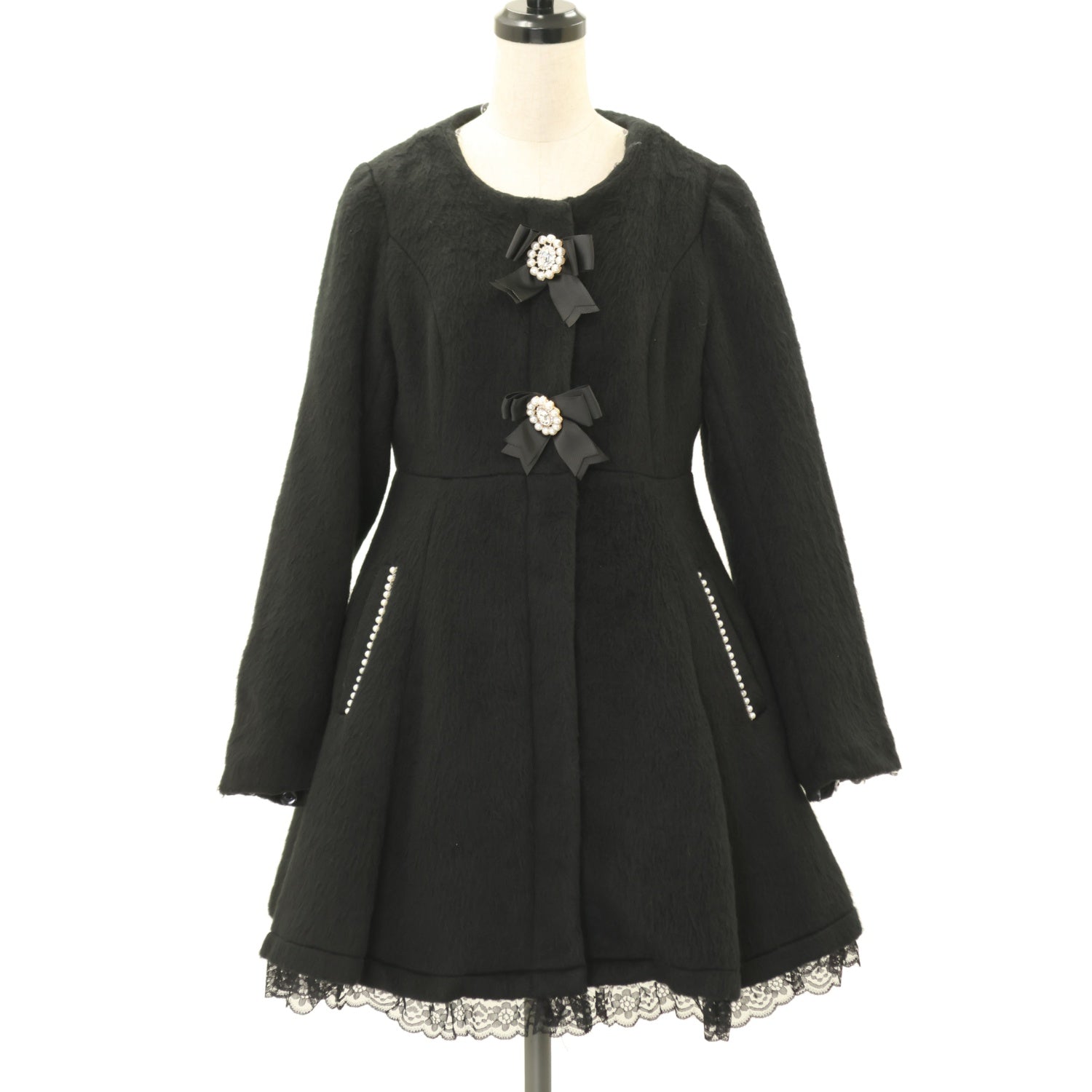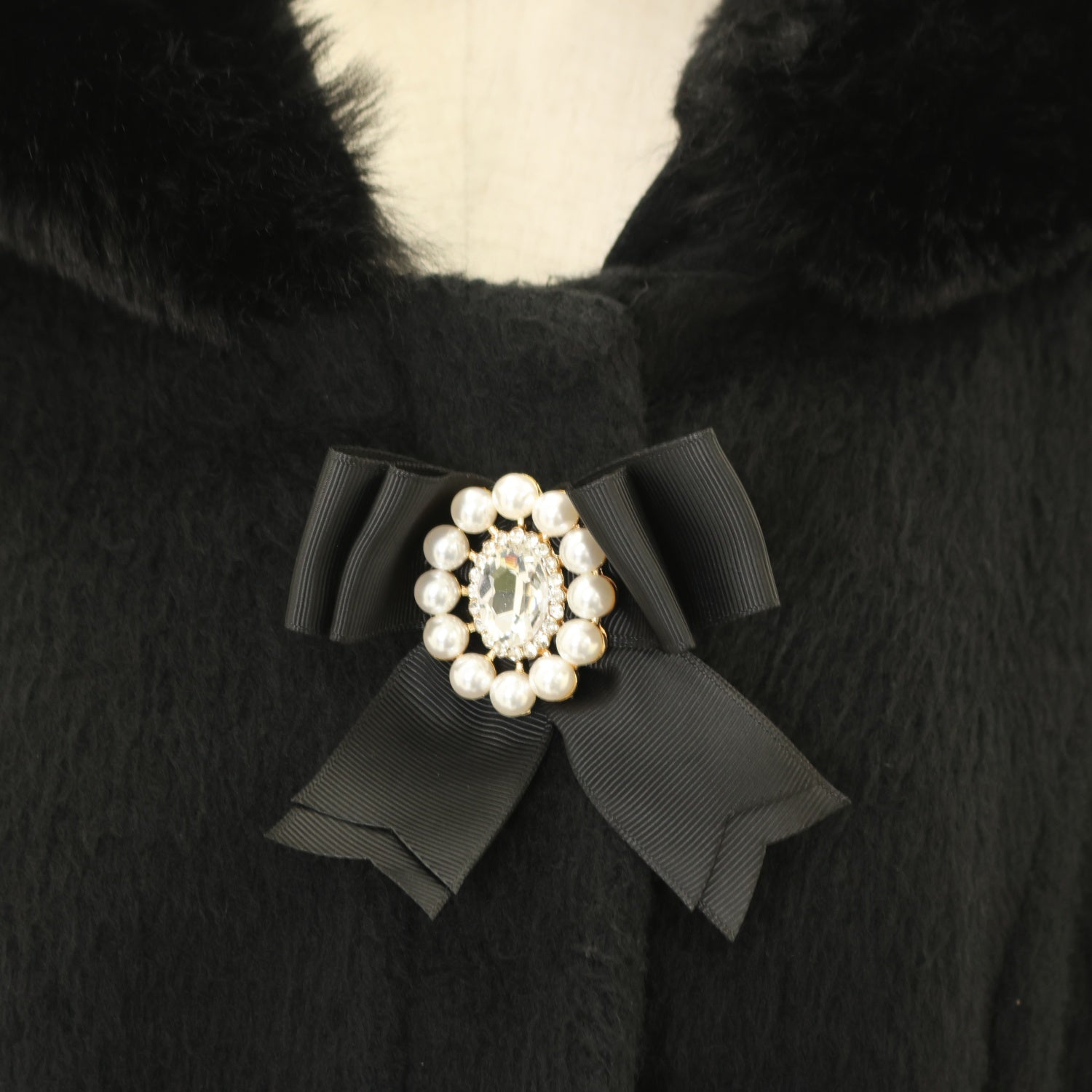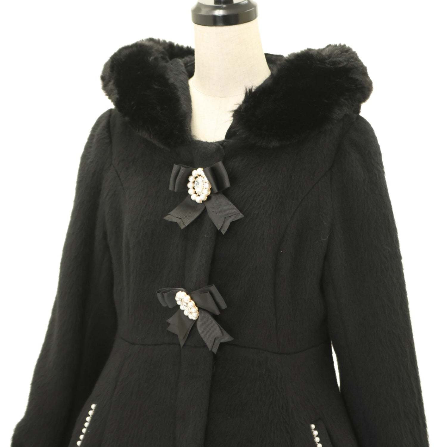 ファー襟・ファーカフス・前身頃リボンブローチ2個取り外し可能