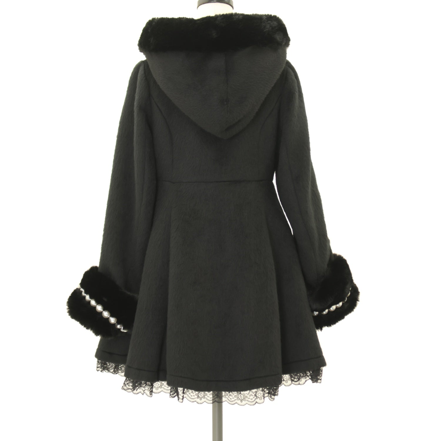 【USED】ビジューリボンロングファーコート