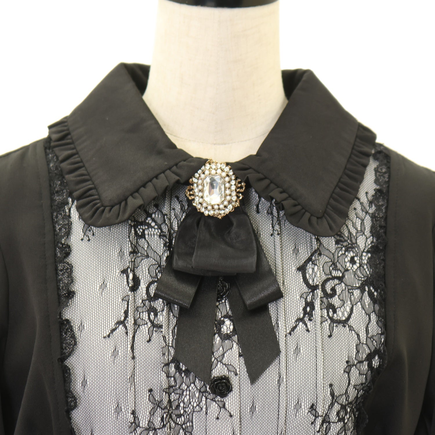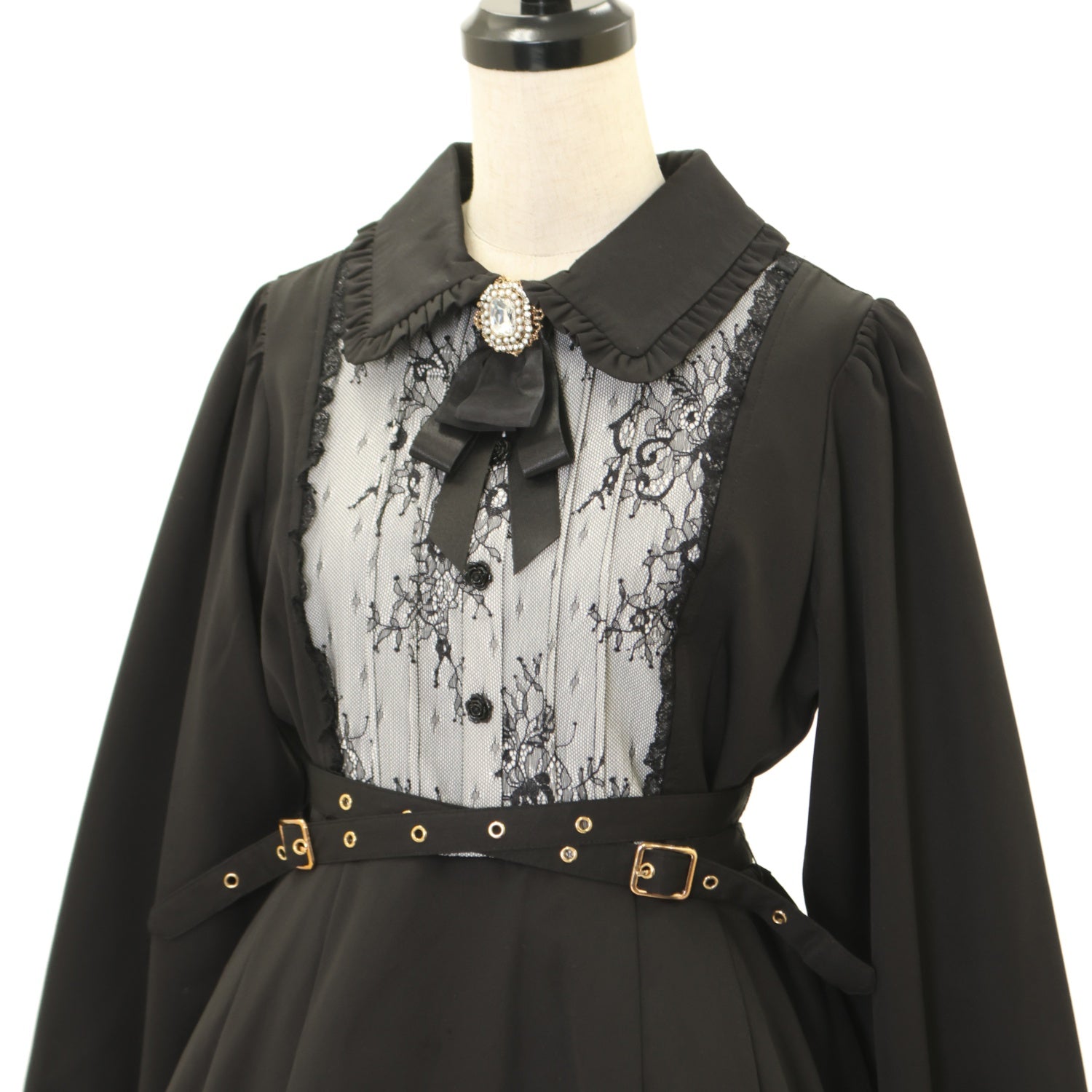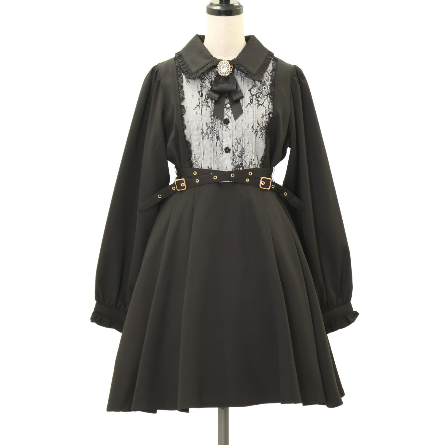 【USED】ブローチ付きレース切替クロスベルトワンピース