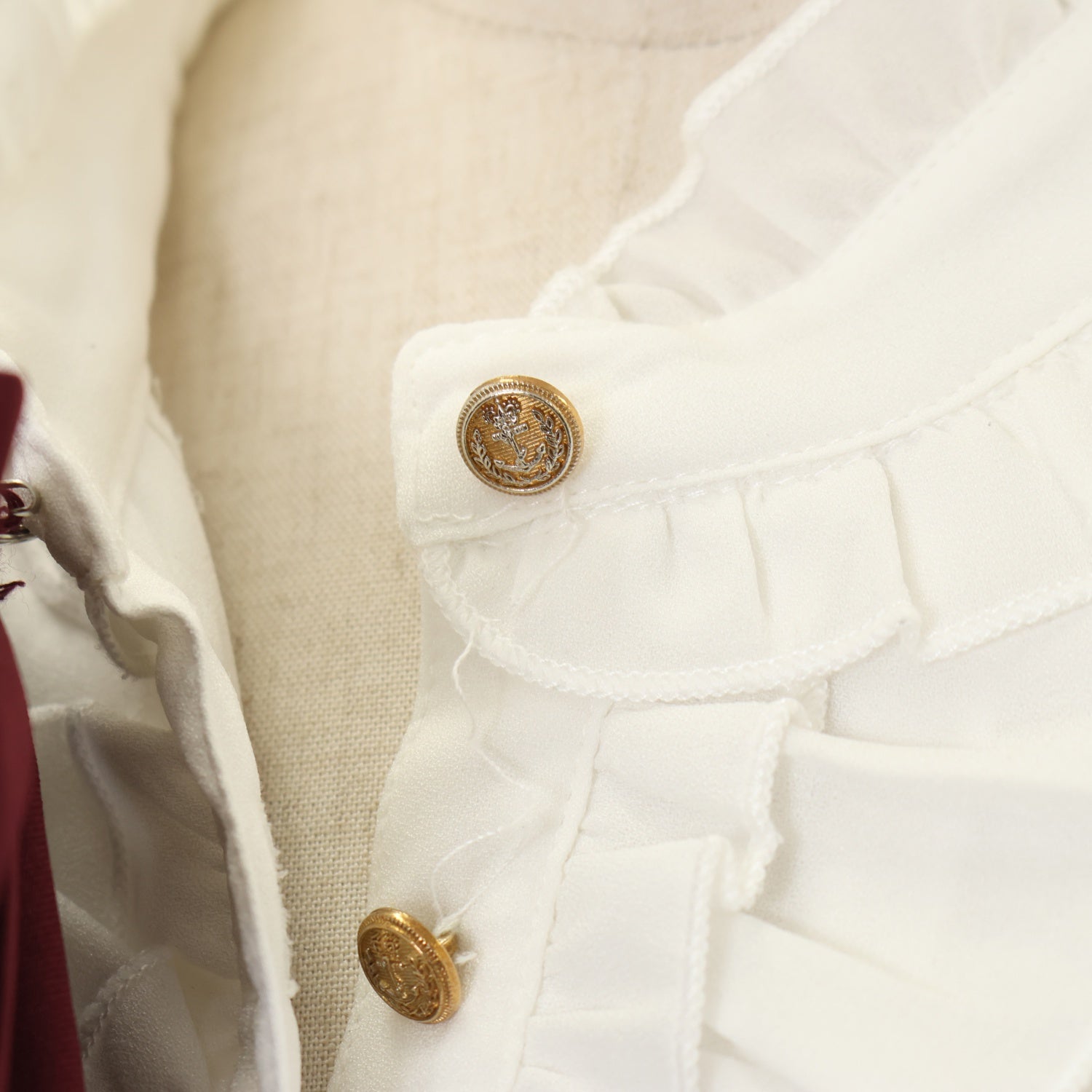 | Product status | 使用感あり 第1ボタン縫い付け・リボンブローチのピン縫い付けにほつれ 背面に汚れ |