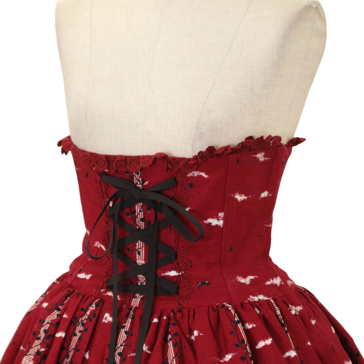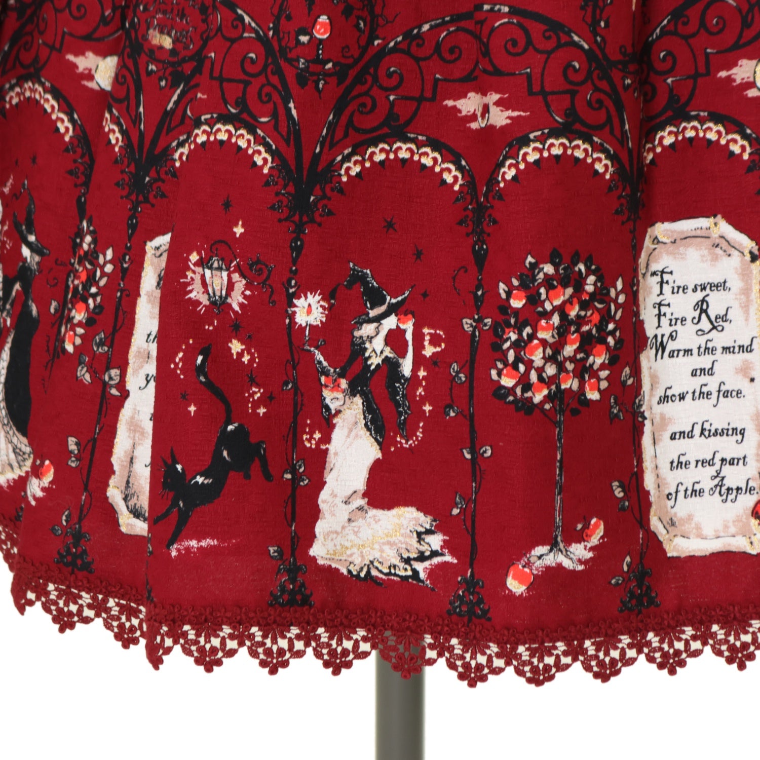【USED】黒ネコと魔女と[林檎の樹]柄コルセットスカート