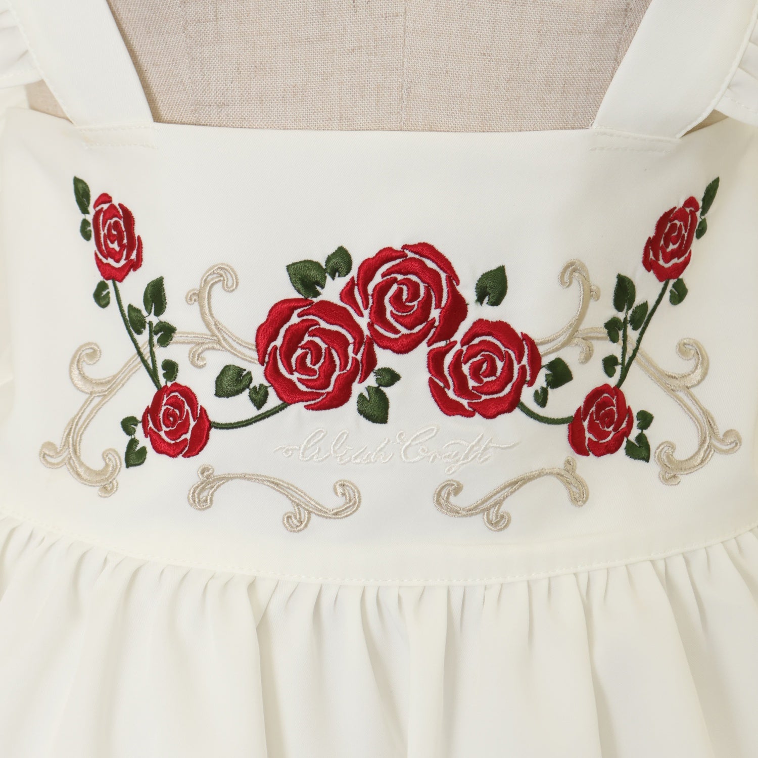 【USED】【witch craft】白藍の薔薇の刺繍エプロン